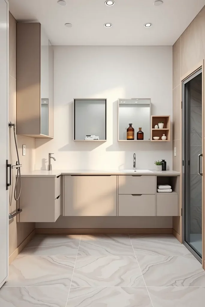 Bathroom cabinets that are floating are one of the major trend in 2026 due to the elegant look and the fact that it makes the room feel airy and spacious. Whenever I design a bathroom which has to appear open and uncluttered, I use floating cabinetry to lift the room both in terms of the eye and the physical space. Upon installing the cabinets on the walls above the floor, I have greater freedom in lighting, flooring runs and the general movement of the space. The clean lines and a sleek silhouette will automatically give any bathroom an upgrade making the room as a whole feel lighter.