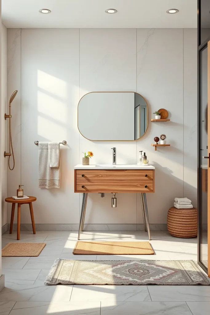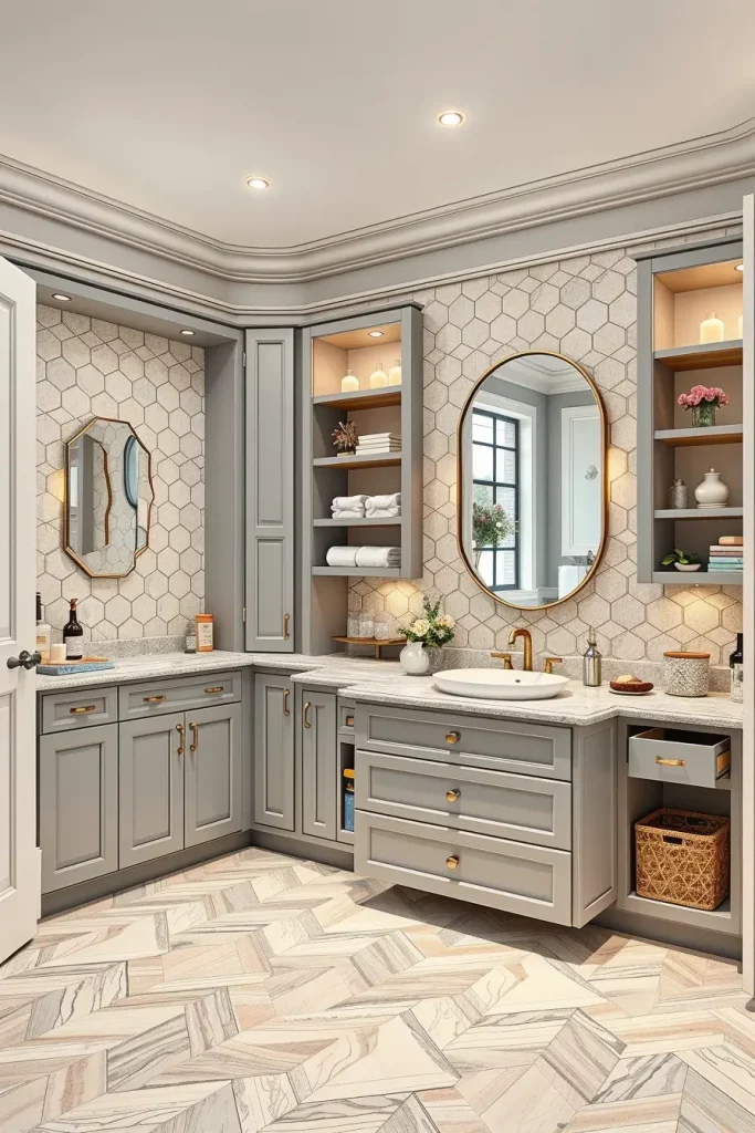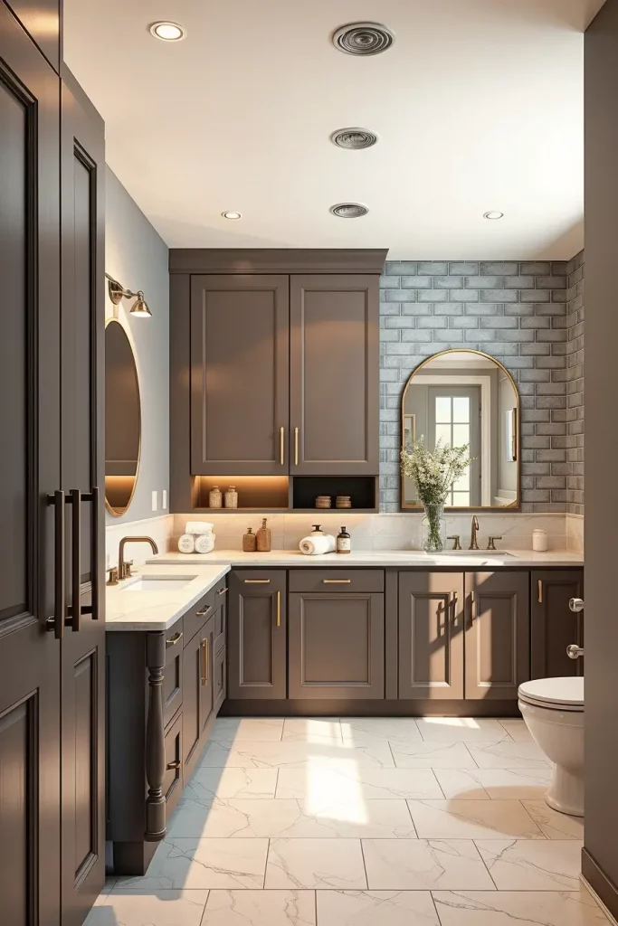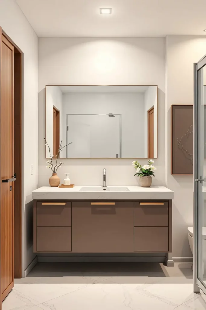 The hardware materials contribute significantly to the end appearance. I frequently apply brushed nickel, matte black steel, champagne bronze or mixed-metal accents to the finish of the cabinets. These materials trap light in a subtle manner, which gives sophistication to the design without making it too congested. Oversized pulls or sculptural knobs are also recommended in most remodels, as this can be used to establish a special point of focus in the cabinetry that is more generic in other contexts. This conservatism and elaboration create a feeling of elevation to the modern bathrooms.