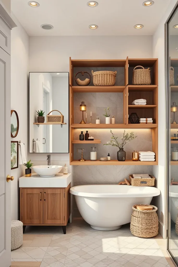 Bathroom cabinets Open-shelf bathrooms give a refined touch to the interiors of 2026, which means that homeowners can display decor, towels and daily needs in a well-organized display that appeals to the eyes. Whenever I make bathrooms with open shelves, I give special consideration to balance, every shelf must not seem haphazard, but rather deliberate. It is a very effective solution in modern, minimalistic and naturalistic interiors.