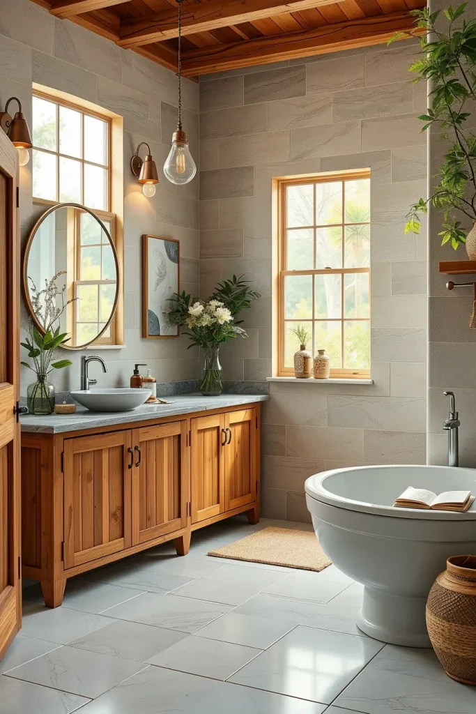 Natural Wood Bathroom Cabinets For Warm And Organic Design