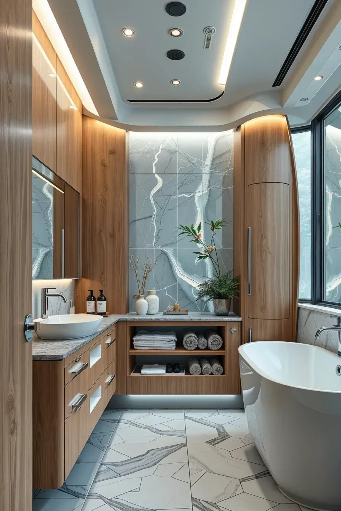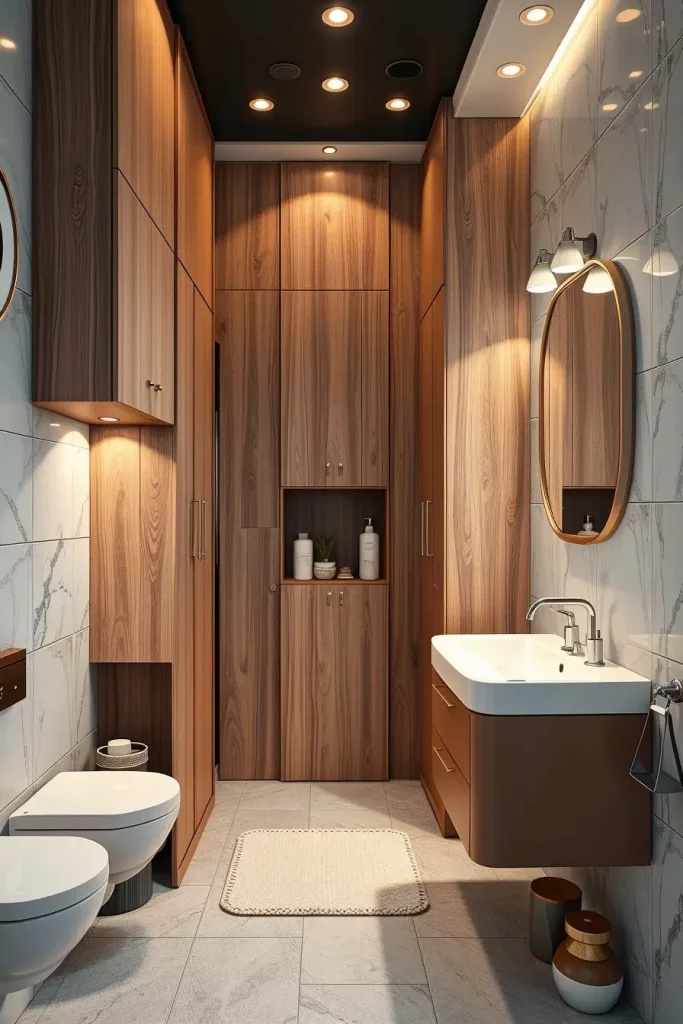 Personally, I have experienced the use of slim cabinets to revise the bathroom which used to be considered to be useless. The Architectural Digest designers often discuss the necessity of in-the-wall storage in the tiny bathrooms, and I also support their point of view. These cabinets create narrow designs that seem much more purposeful.