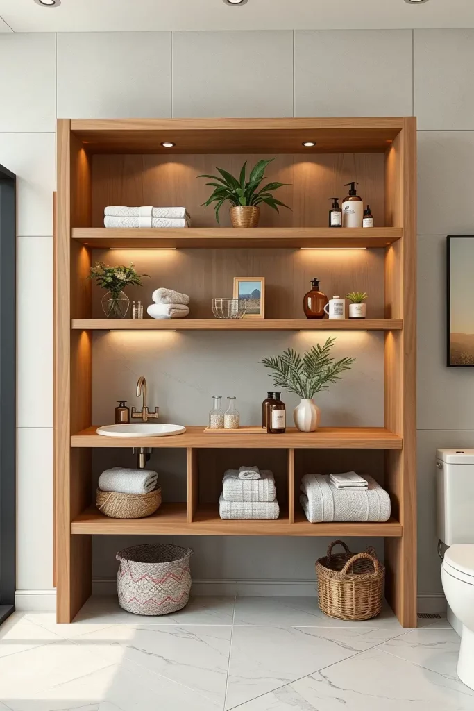 Open-Shelf Bathroom Cabinets For Stylish Display Storage
