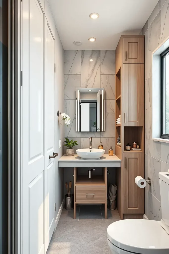 The article provides a practical idea of using slim bathroom cabinets in the narrow or small areas, which is why I often use it in the optimization of the layout of 2026. Their thin nature does not require walkways to be closed, but allows them to store vertically or in the middle-height. To create a balance in these tight floor plans, I usually use such cabinets next to vanities or close to showers.