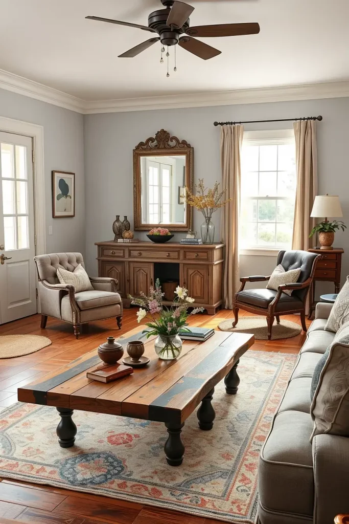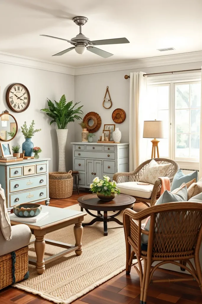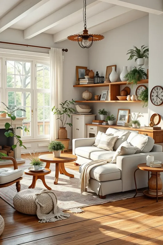 When the base of your farmhouse living room is done, the paint and the furniture, the textures, all are covered, you can concentrate on the finishing touches. In my opinion, accessories are what make a beautiful room a really personal space. Imagine botanical prints, homemade ceramics or a huge wall clock with the rusted metal frame. Curated simplicity will be the order of the day in the year 2026: every single piece ought to be meaningful and not just decorative to be ornamental.