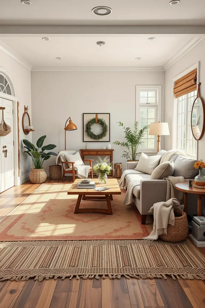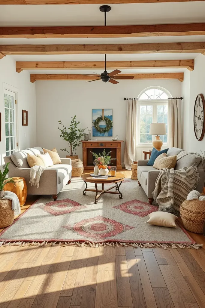 Aristocratic layers are all that can make a farmhouse living room cosy. I would always suggest adding pattern, softness, and interest to the floor by way of making sure to add layers of rugs. In 2026, the trend is oriented towards natural materials – jute, cotton, and wool – which are frequently combined with each other to achieve organic richness. This is particularly effective in open areas where you would wish to create a clear-cut area.