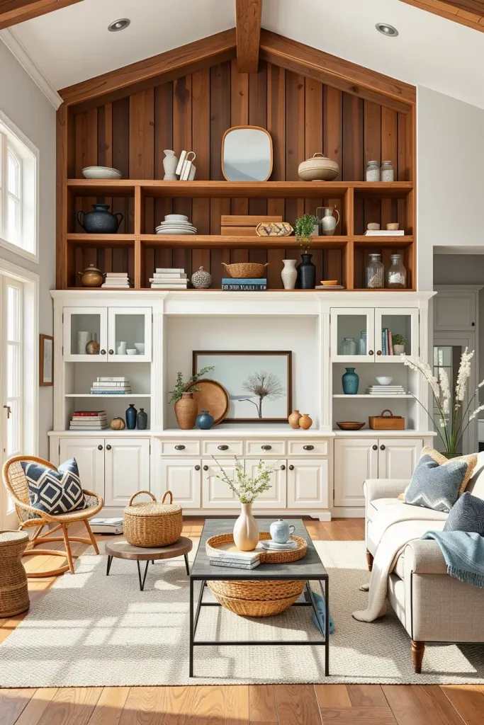 A farmhouse living room should also be smartly stored to ensure that it is functional, as well as beautiful. By the year 2026, the open shelves and built-ins will become necessary design elements. I am a fan of the juxtaposition of rustic wooden shelves and smooth white cabinets to create a new country feel. These styles enable them to display easily favorite books, pottery, and all other vintage finds and hide unattractive objects.