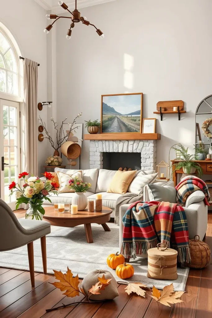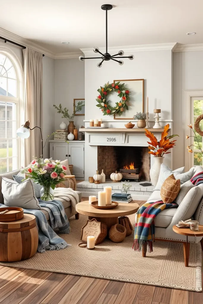 My preferred aspect of design is to make a farmhouse living room adapt to the changing season. In 2026, there is an increased focus on adaptable styling that does not require complete redesigning of the house. I suggest one should begin with an unimposing groundwork, i.e., white or cream walls, light wood accent and add the seasonal textures and colours to suit the mood of the season.
