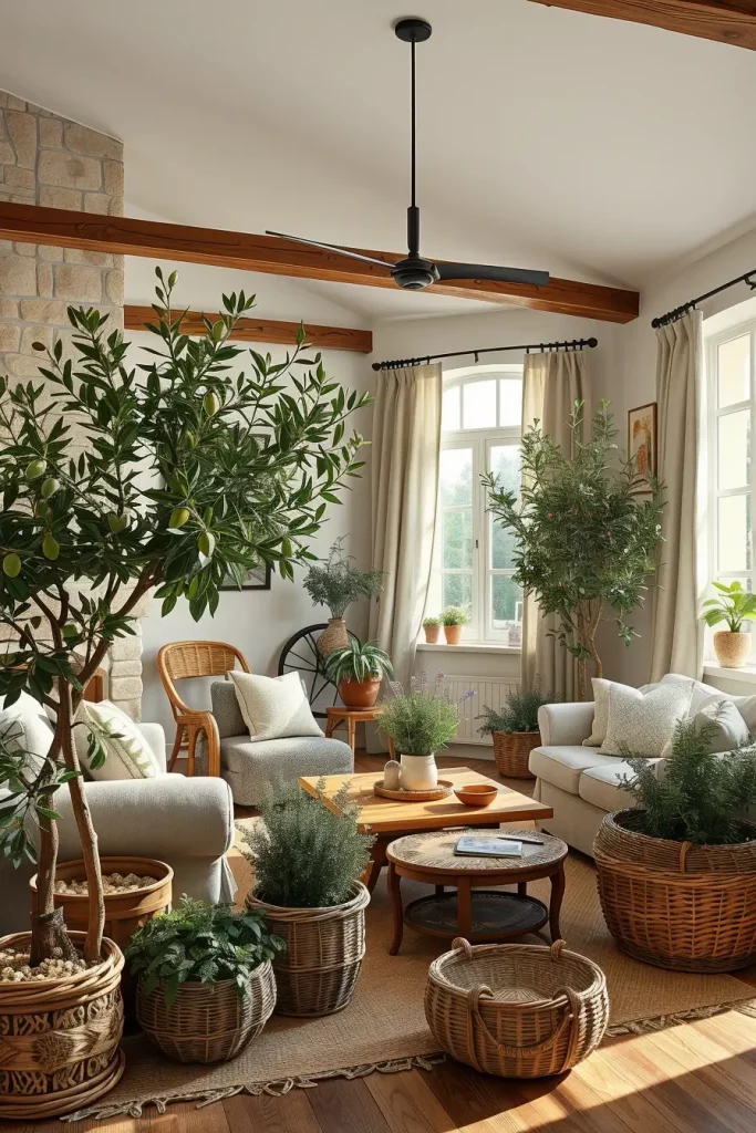 The indoors-outdoors is what characterizes farmhouse design in 2026. I always incorporate plants and natural substances in my living room decorations since they immediately transform an area into something living and the revitalizing effect. Imagine olive-trees in woven baskets, or garlands of dried eucalyptus, or in pots of herbs by the bright windows.