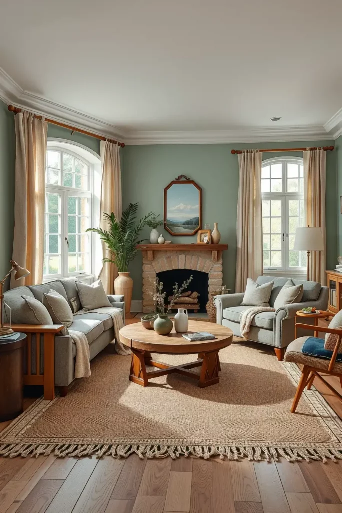 My design combination is that of neutral walls with woven carpets, linen curtains, and solid oak furniture. The introduction of pops of color in the form of ceramics, pillows, or artwork is what makes the space vibrant and still together. Even the most modest farmhouse living room can be transformed into an unforgettable and up-to-date only with the help of the correct color palette.