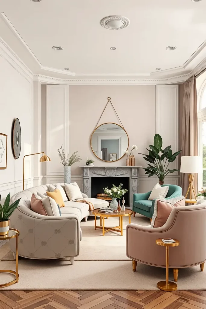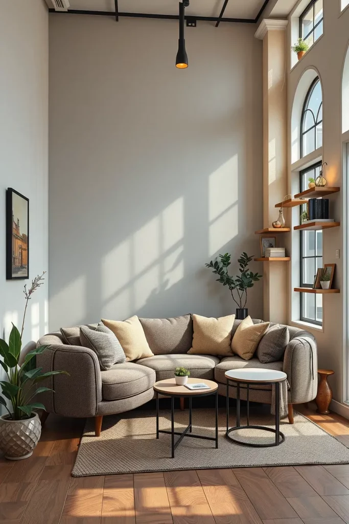I would suggest soft throw blankets of natural materials, oval or round decorative trays and curved accent mirrors to create visual continuity. Your primary furniture pieces can be gently replicated in cushions of tactile materials such as boucle or suede. Even such minor details as artistic candles, ceramic vases, or designer books can create a layer and lived-in look to the room without making it cluttered. Select lighting sources that can be used with these types of textures: sculptural table lamps or diffused LED panels in warm color.