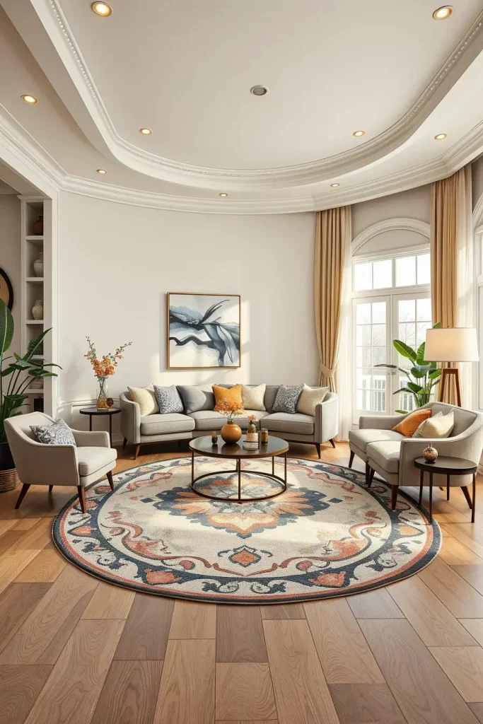 When I plan around an oval centerpiece, I strike the balance of the beautiful design with the help of minimalist lighting, rounded ottomans, and area carpets with the reflection of the oval shape. One should be careful in maintaining the symmetry and ensure the whole composition is soft and flowing.