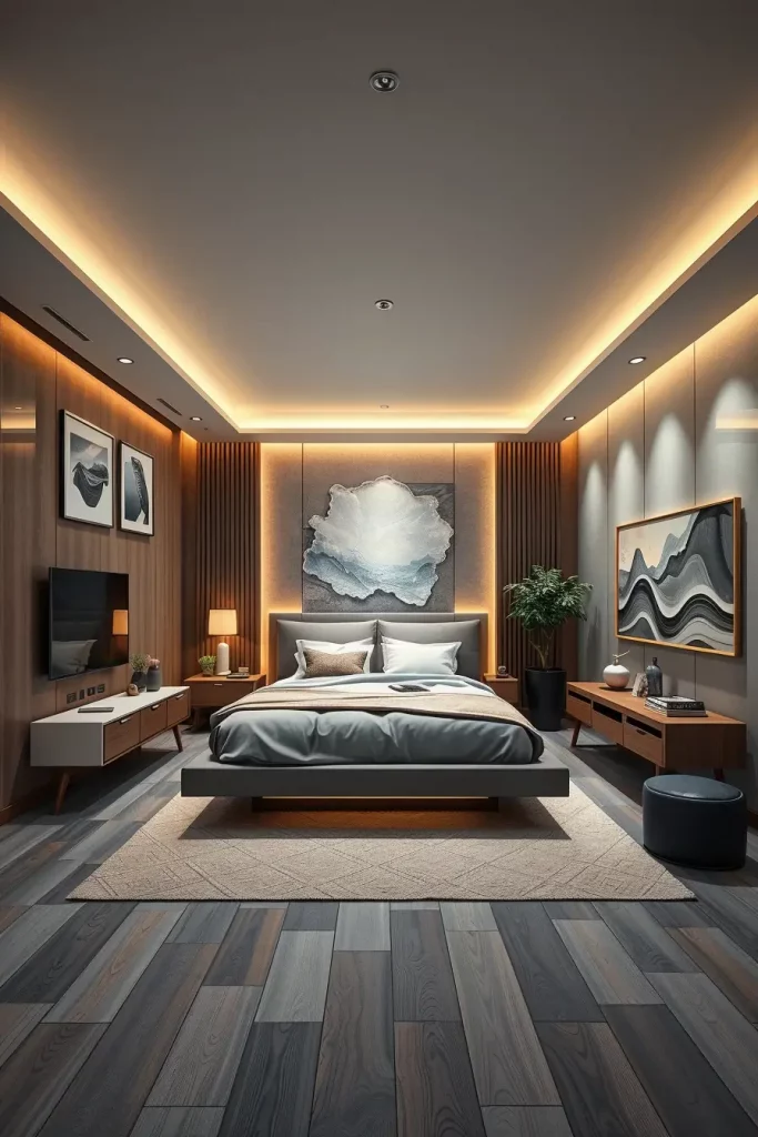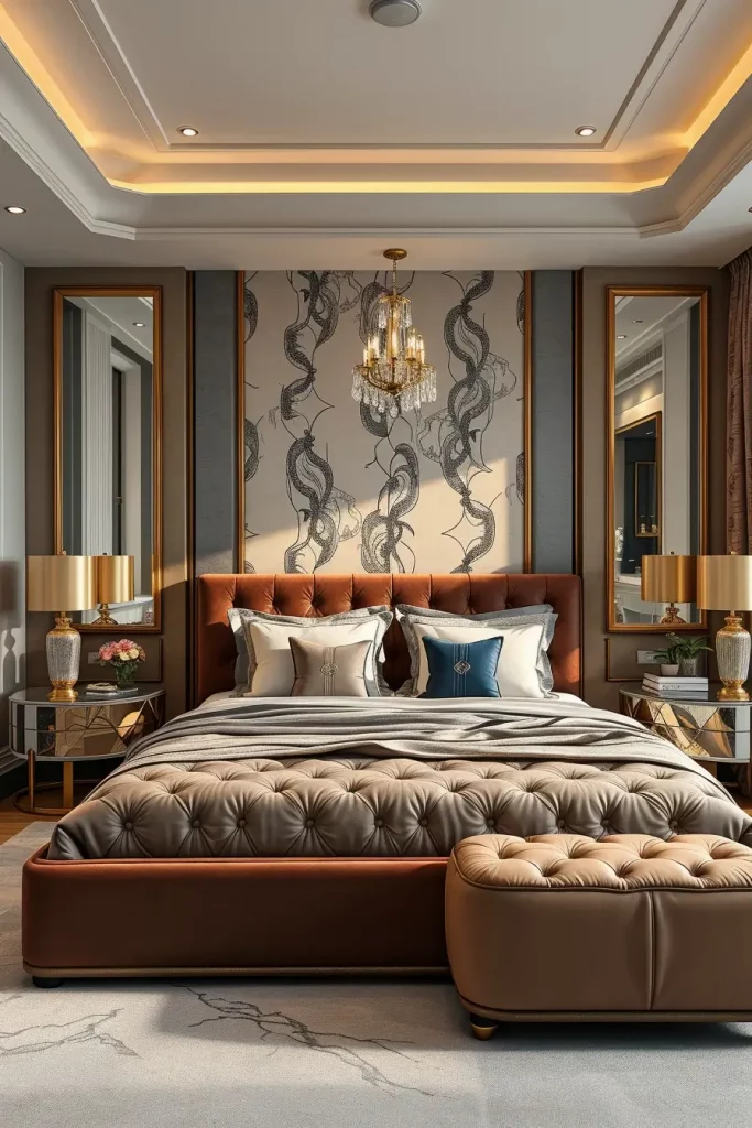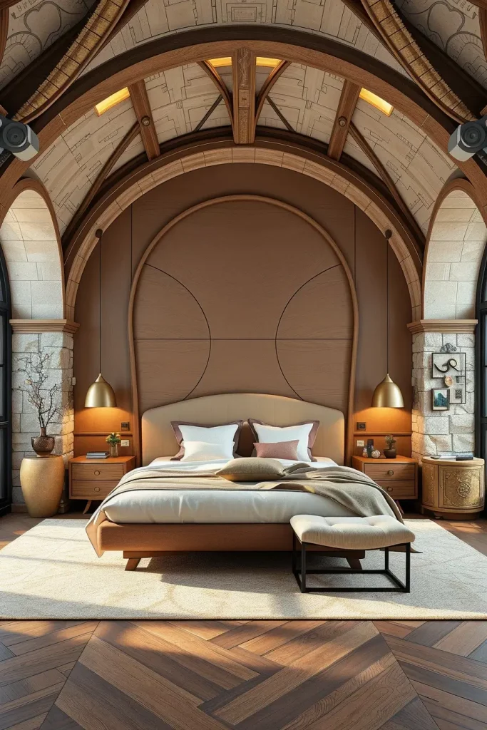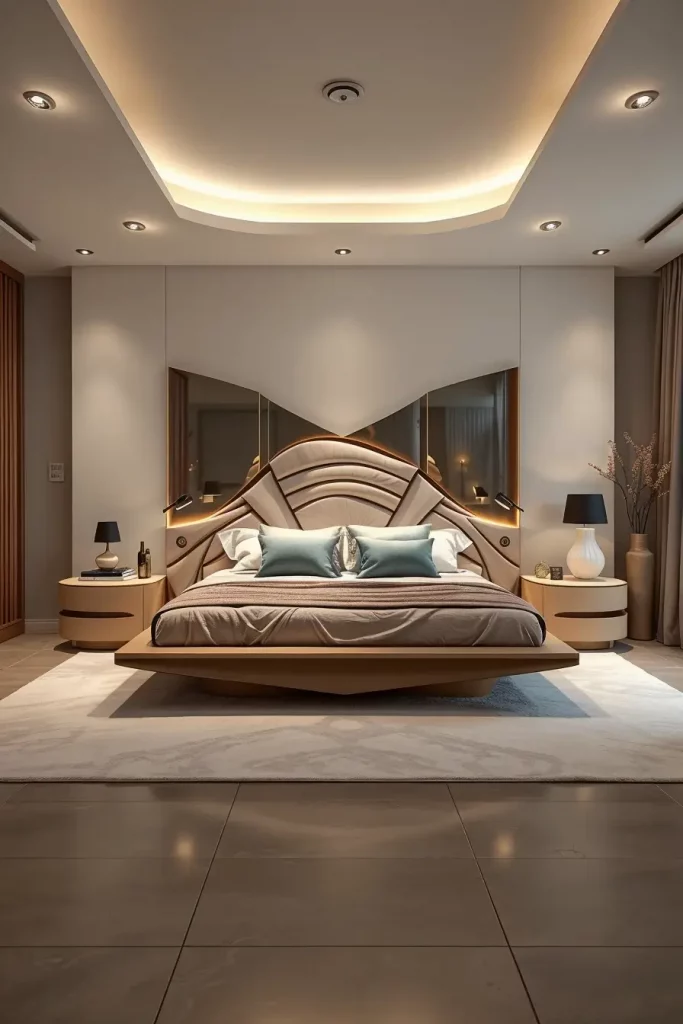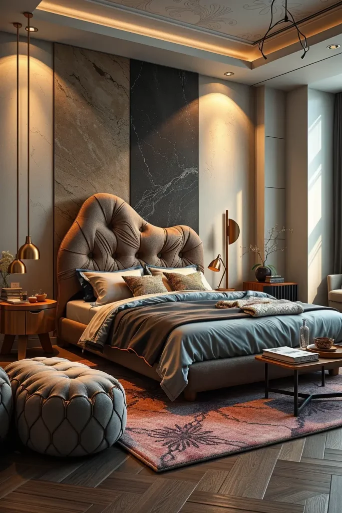 I usually merge artistic beds with rough wall, abstract art, and asymmetrical nightstands. The designs are made bold with such materials as lacquered wood, glass, or metal accents reflecting the craftsmanship. Between form and comfort it is a fine line.