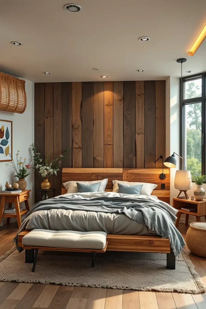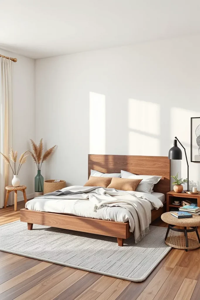 To make this appearance complete, I would contribute organic cotton sheets and a few artistic elements in the shape of decorative items, like ceramic lamps or sculptural vases. Instead of the most wooden designs, I feel that proper lighting is lacking, which can be improved by putting LEDs under the frame that will help warm and show the natural grain of the wood.