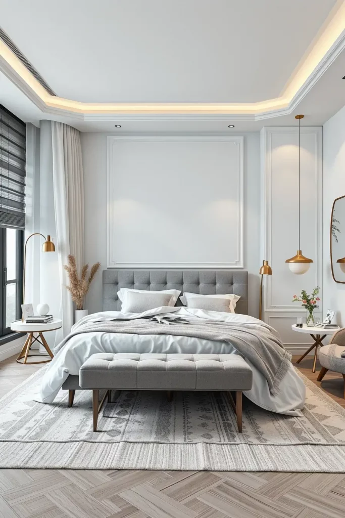 I would add some natural textures, such as linen bedding, rattan furniture, or woven wall decor to improve this section, as this will establish a balance between the modern palette and the feel. The compilation allows dishes to render the space lively even in the case the tones are quiet.