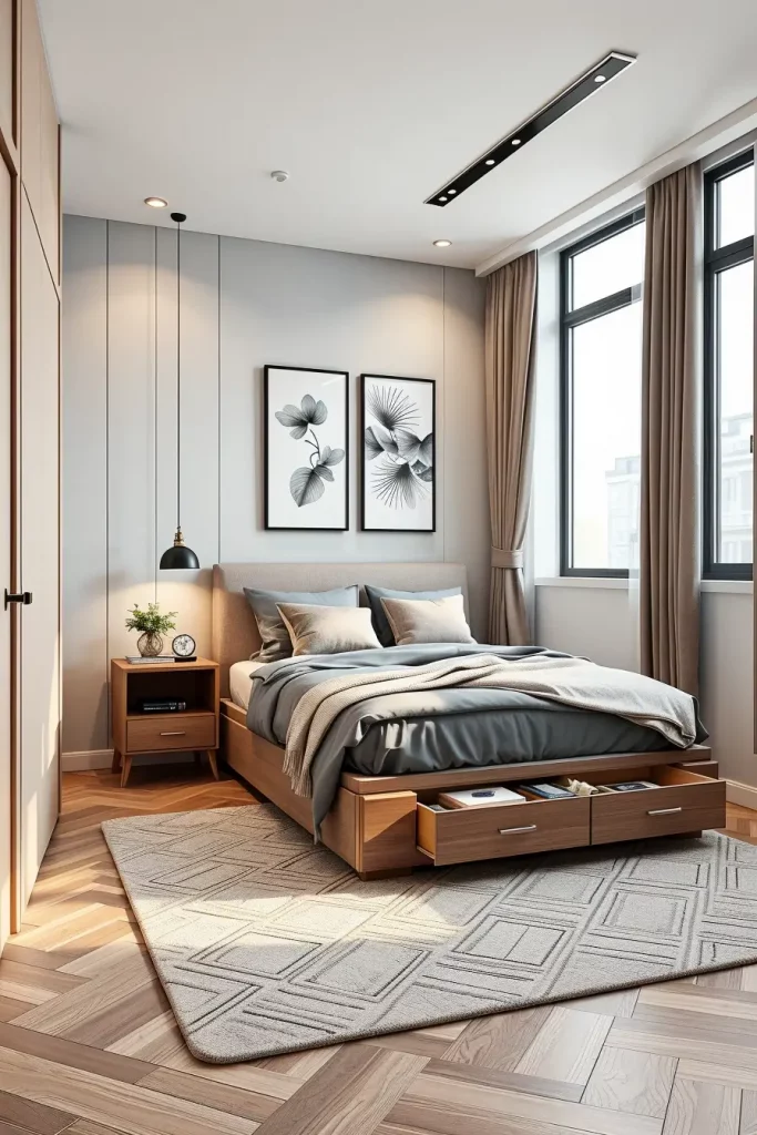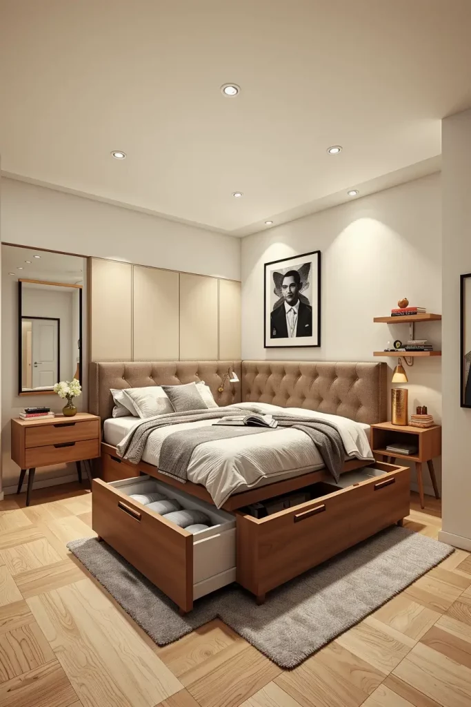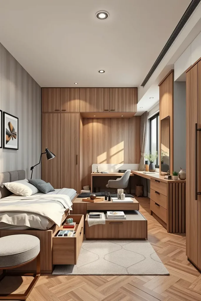 In my case, the greatest deficiency in most, tiny apartments is the lack of integration between form and function. I would recommend the use of aesthetic beds that offer storage that is not visible but remain aesthetically balanced-evidence that efficiency may not have to be ugly.