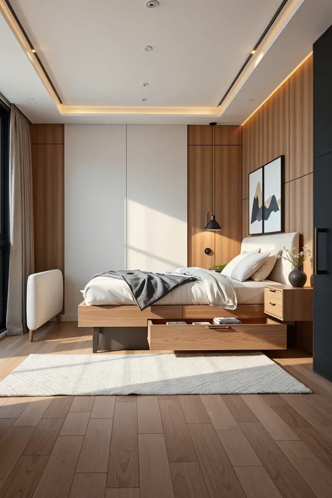 I usually begin with the evaluation of how the bed will be utilized; whether it is the sleeping area, the reading area, or the relaxation area and then customize the areas. Function and appearance may be enhanced with the help of upholstered elegant frames in soft textures, concealed storage drawers or sound-absorbing wall panels. The goal is to establish an atmosphere that will facilitate comfort without compromising on a very sleek and very luxurious appearance.