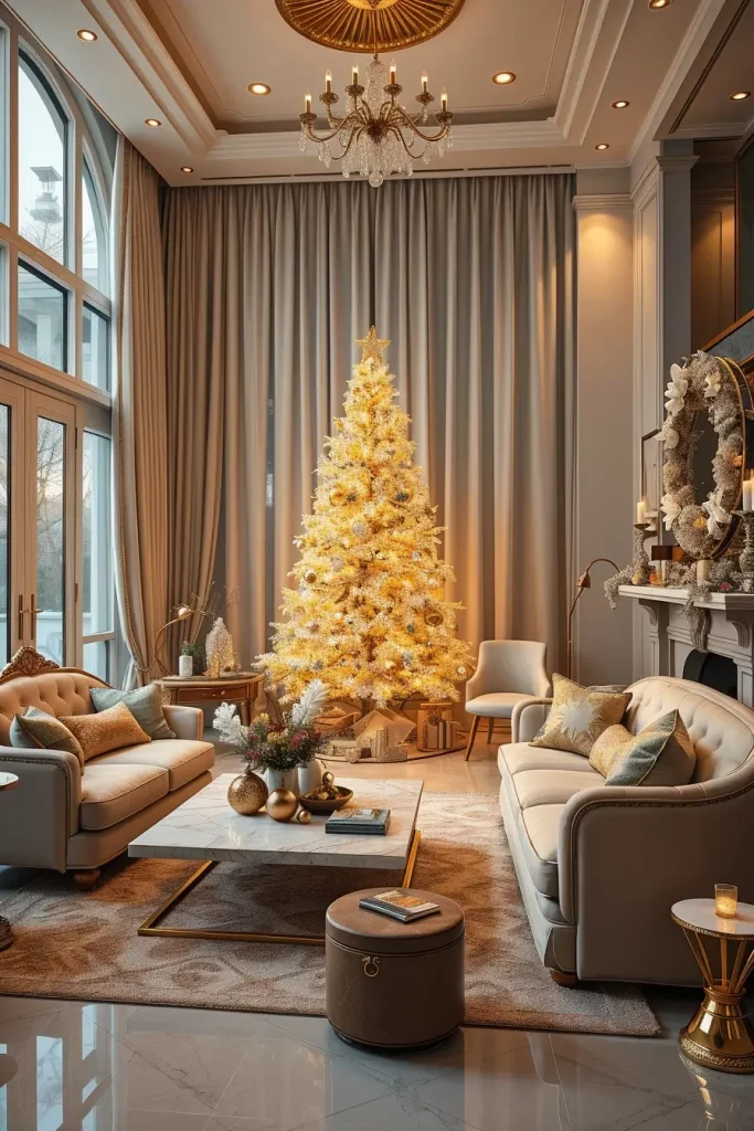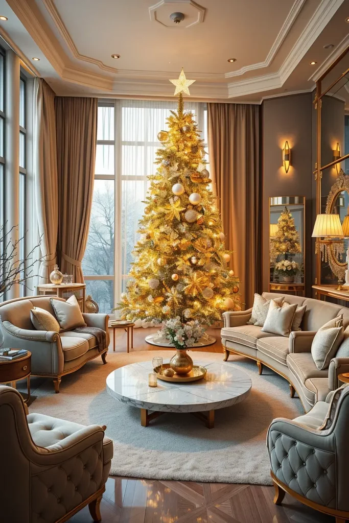 Nothing captures the essence of the holidays like the fairy-tale glow of illuminated gold Christmas trees. When I design such spaces, I focus on the light’s softness—it should feel like candlelight rather than stage lighting.
