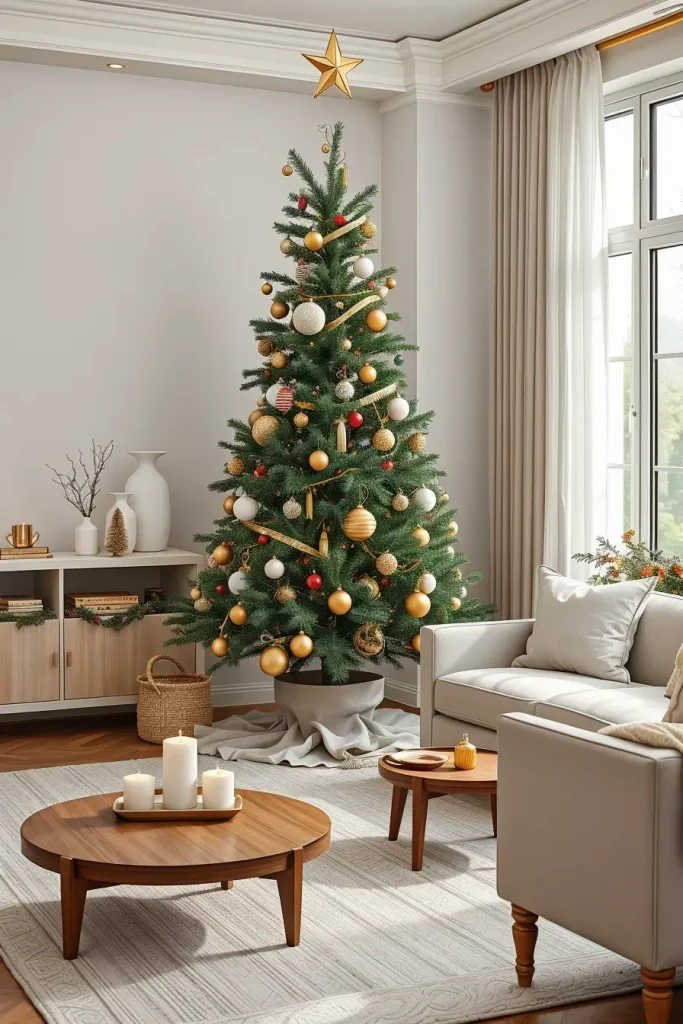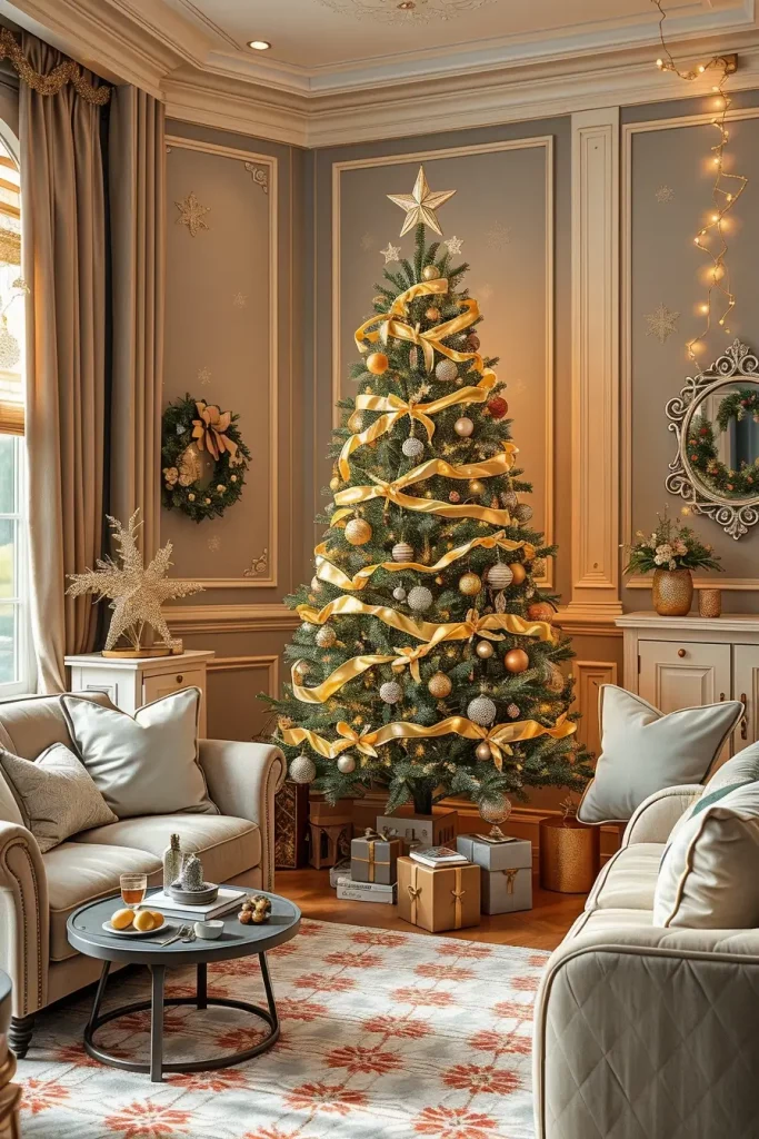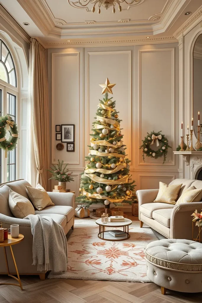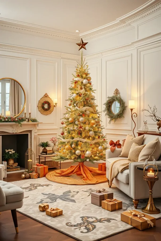 I will love to use the gold Christmas tree 2025 trend as one of my interior strategies, and it will be combined with other metallic accents. Put together, silver, bronze, and champagne colors are somewhat combined in a layered glitz that is both exclusive and sophisticated. I frequently suggest a neutral palette of base colors, cream, sand and dove gray, to ensure that these metallic colors do not drown the room. It is elegant but still celebratory and can be used in both contemporary apartments and also in classy homes.
