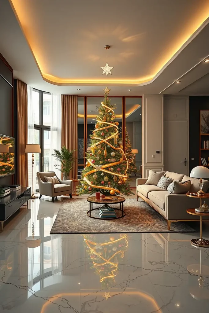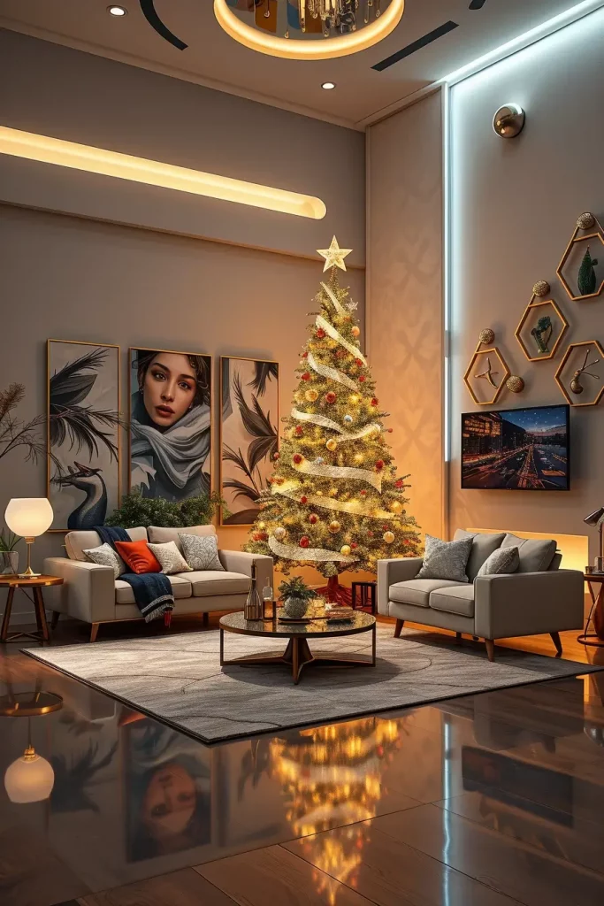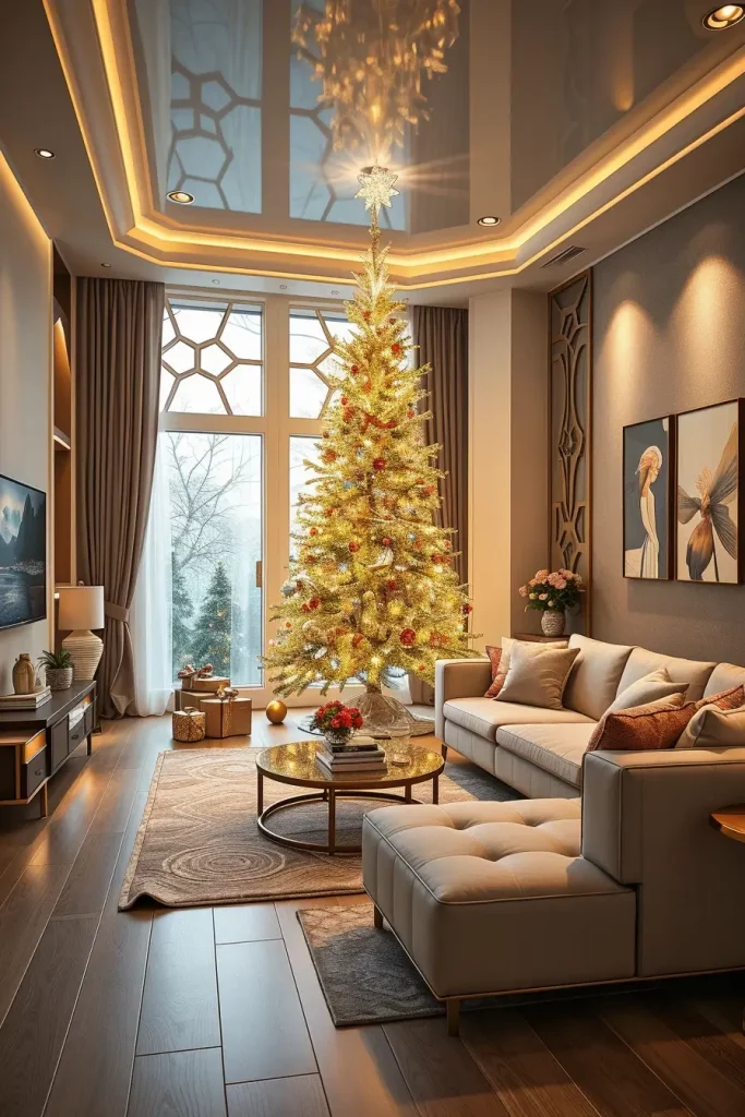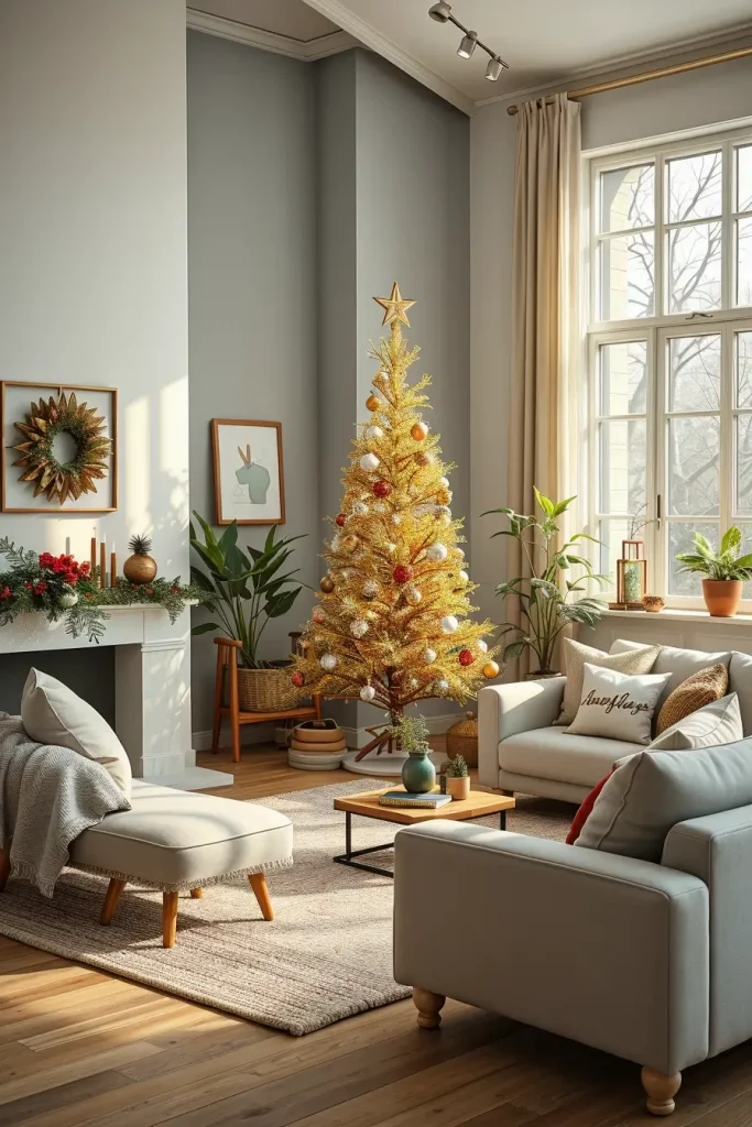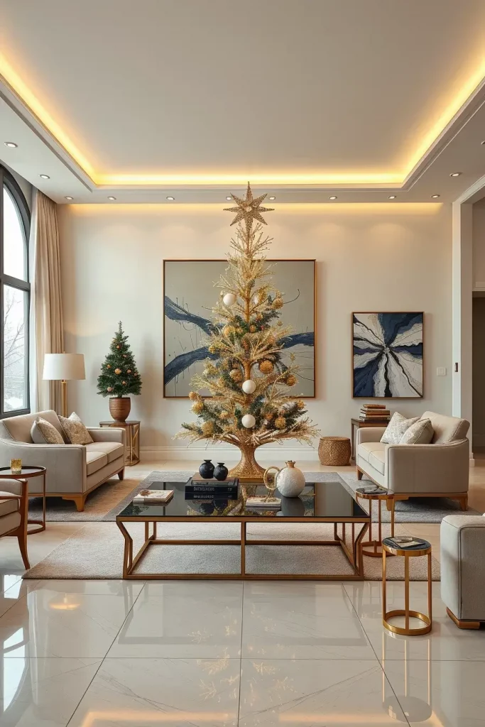 In my case, the contemporary vacation style begins with a definite design language-less but effective. The aesthetic perfectly fits in the gold Christmas tree 2025. I would like to make the setting smooth with the tree being combined with sculptural decor and geometric lines. What has been created is an atmosphere of a celebration that is fresh and designer, but also very obviously comfortable.