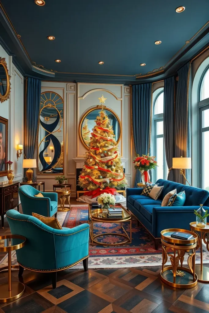 I have observed this style in Architectural Digest where great designers tend to combine gold with bold colors in order to create high impact as well as balanced designs. In my personal opinion, it is a snazzy manner of updating the regular Christmas decoration and yet making it classy.