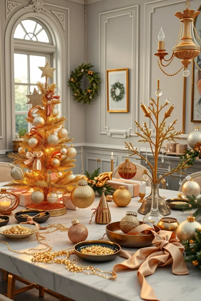 I would suggest establishing a crafting station where there is gold leaf sheets, glitter and beads. Basic forms, such as stars, hearts, or snowflakes become posh when done with accuracy. Combining them with the ready-made designer ornaments provides the balance between the DIY and professional polish.