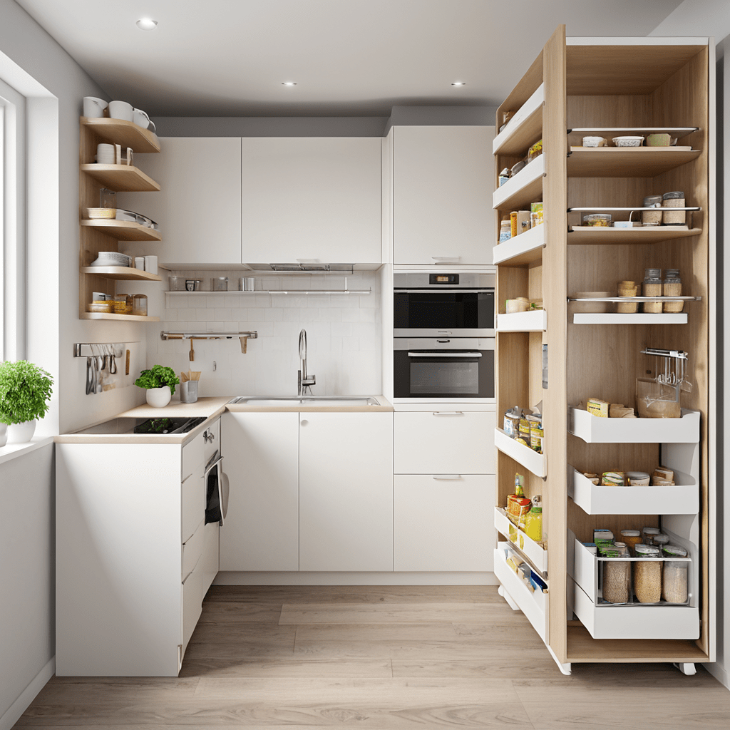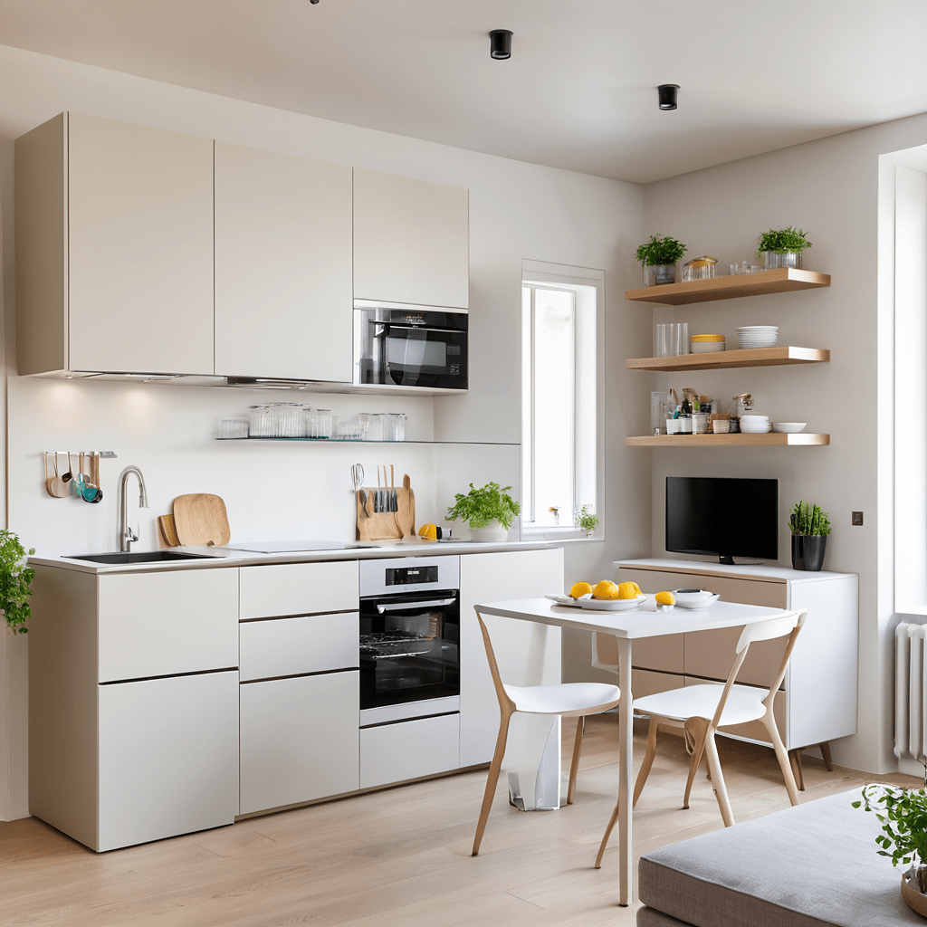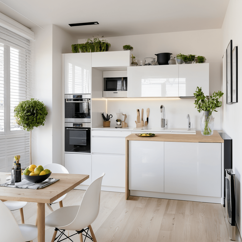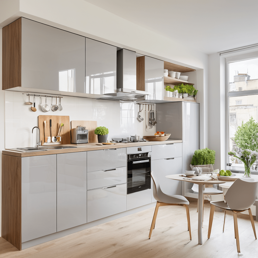 An efficient small kitchen planning requires a clever approach to managing the usable space of the kitchen. The primary means for us are to use space-saving options such as miniaturized appliances, multi-purpose furniture pieces, and non-standard storage such as pull-out pantry shelves and vertical cabinets. Bright colors and reflective materials can help create the illusion of a bigger area, meanwhile, open shelving, as well as glass-front cabinets will bring in an open, airy atmosphere. Small modern kitchens can also be tricked into being more storage-inducive by using the custom-built elements to smartly utilize every corner and with a stylish edge.