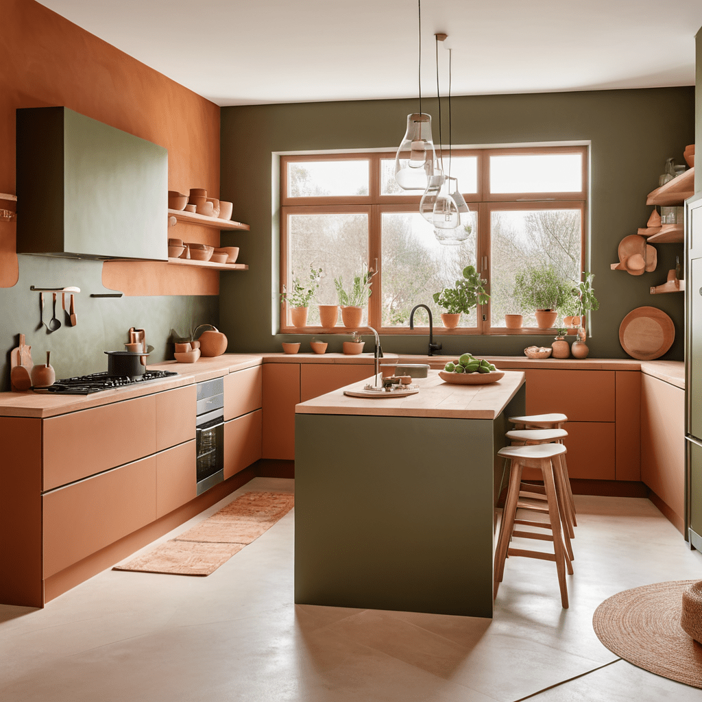 To include earthy tones in the modern kitchen design is an idea that conveys warmth as well as a sense of being close to nature in a space. Colors such as terracotta, olive green, and warm beige are what make a pleasant and homely place, meanwhile, materials like wood, stone, and clay appear to provide a multitude of textures and depths. It is usual in Earthy kitchens to have the focus continue to the natural form and natural light, thereby achieving a sense of earthiness and peace in space. Therefore, mixing natural materials with modern structural elements yields a balanced setting, which is both trendy and calming. This design concept is preferred by those, who are interested in having a kitchen that is modern in style, yet still closely associated with nature.