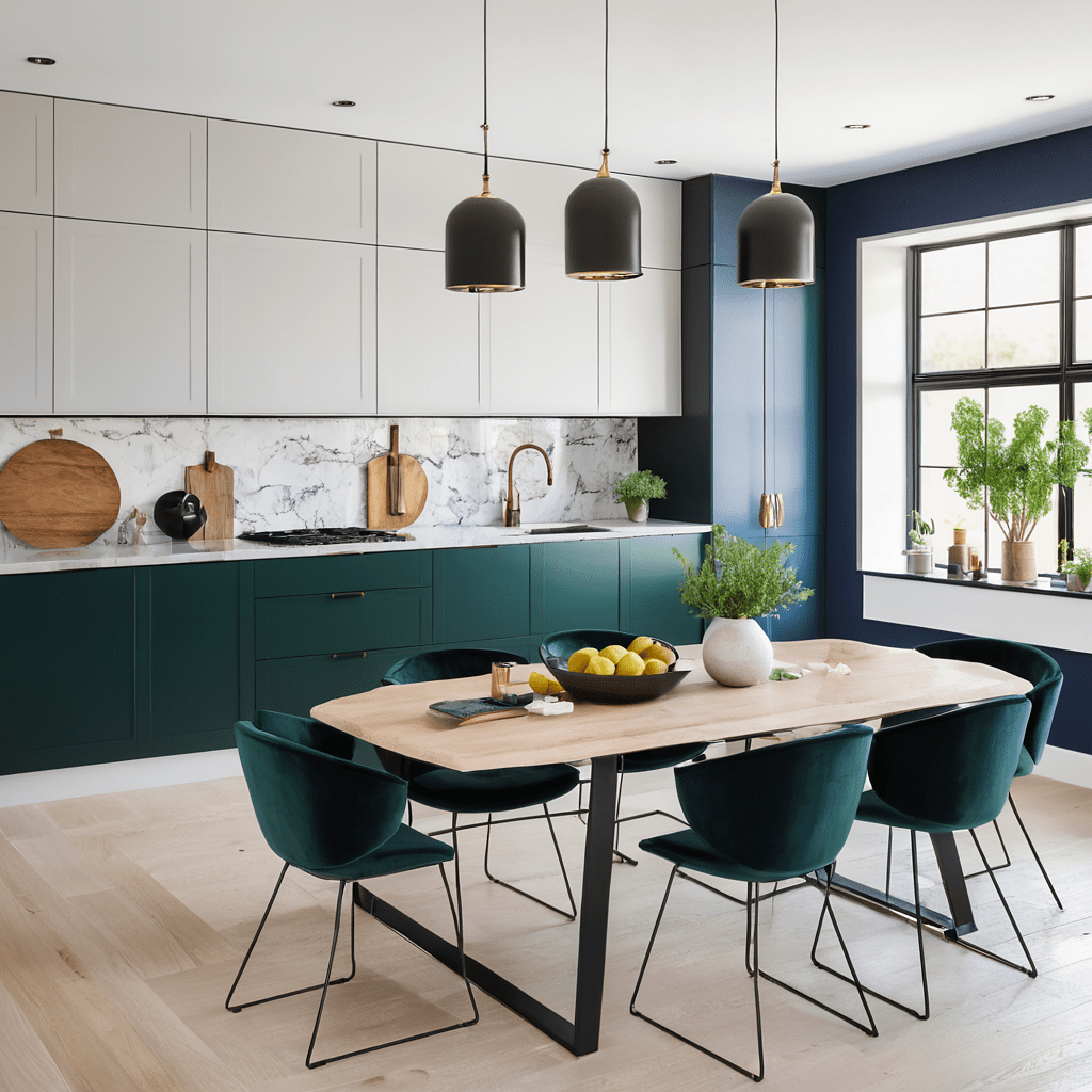 Color selection of a modern kitchen is of great importance in determining its overall look and feel. Neutral colors such as white, gray, and black create a clean and sophisticated look in a contemporary kitchen. If you want to bring a pop of personality, you can choose vibrant colors such as cobalt, olive, or matte black which will give your space character and depth. Also, one can consider shades of nature that are getting really popular because of the warmth and natural beauty of these worn tones. The main idea is to pick colors that will be in harmony with the major design of the space and will create a cohesive, which is also a welcoming space, and also is a visual reflection of your personal style.