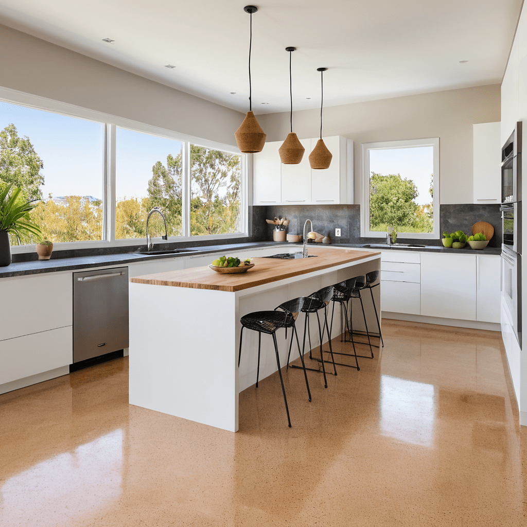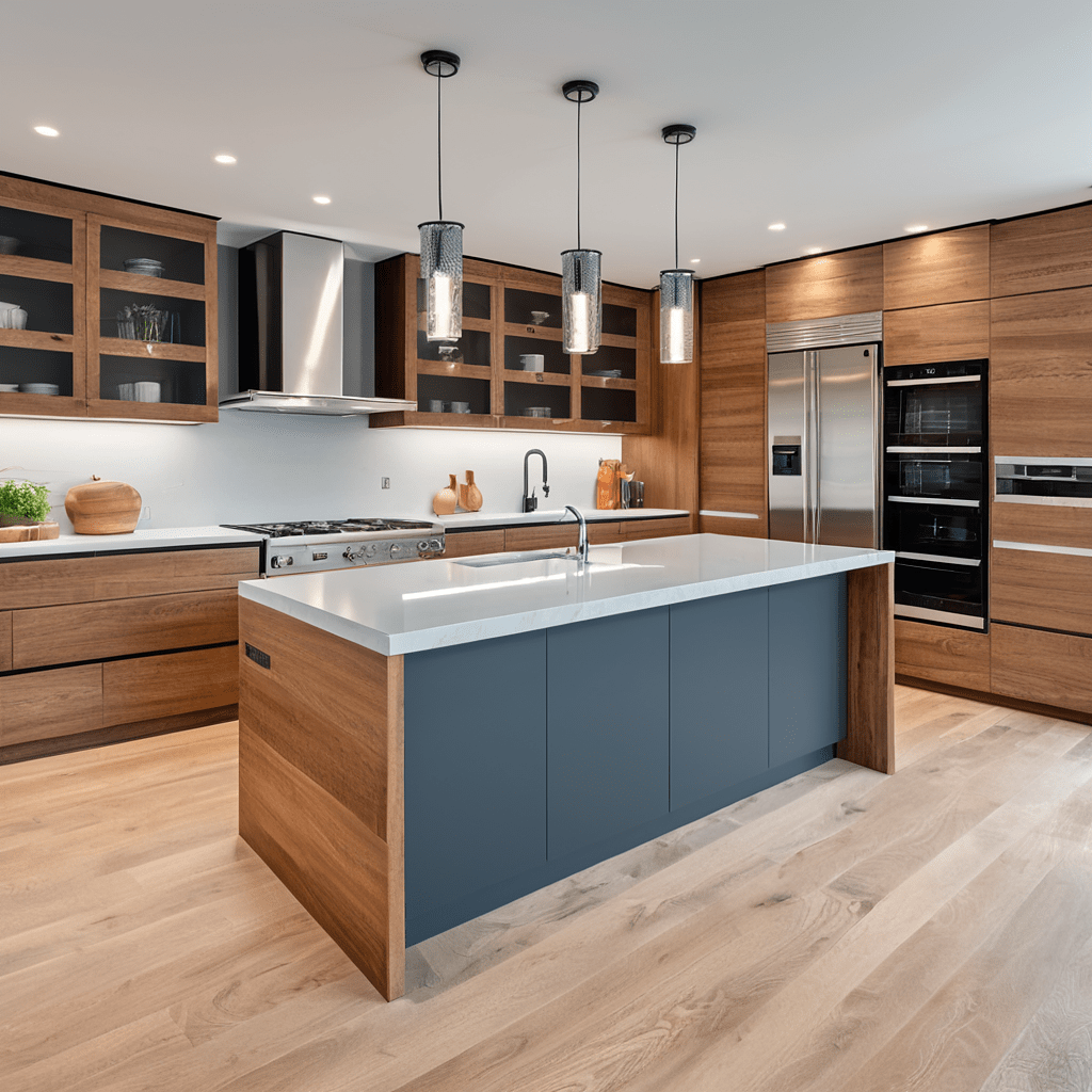 A modern kitchen floor should not only be durable, but also aesthetically appealing as it is the space’s foundation. In style are hardwood flooring, polished concrete, and large tiles, which not only give different looks but, also, different levels of practicality. The hardwood floor is likely to make your kitchen look warmer and have an air of elegance, while a concrete floor would make it look more industrial and contemporary. Large-format tiles, especially in neutral colors, create a very smooth and continuous look that fits the current minimalist design trend.