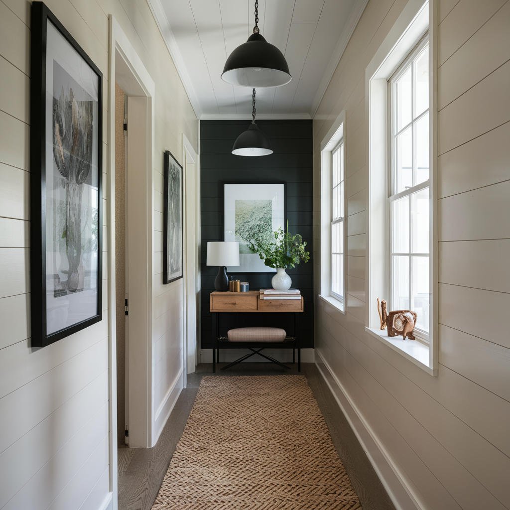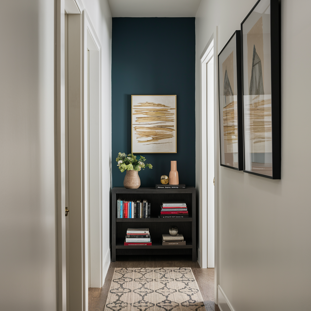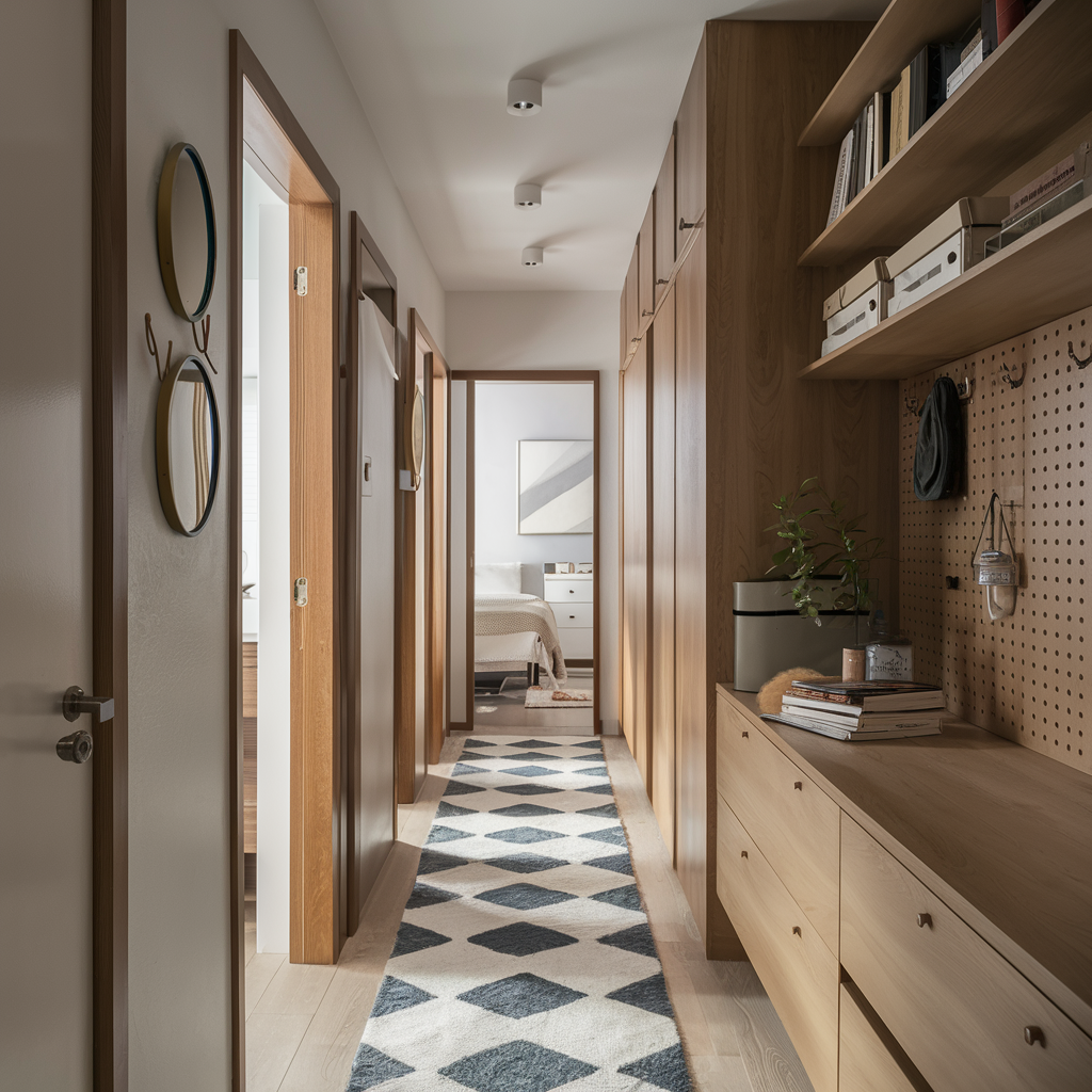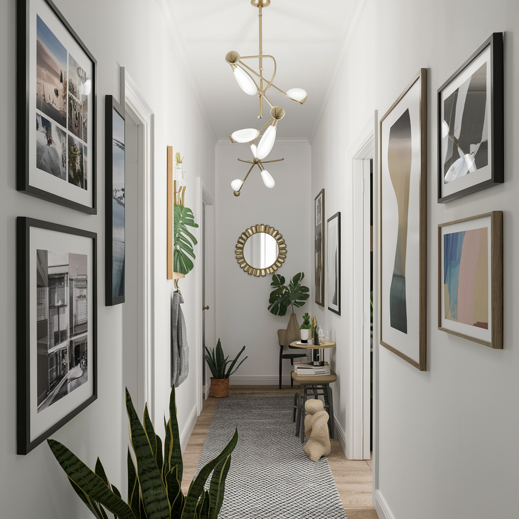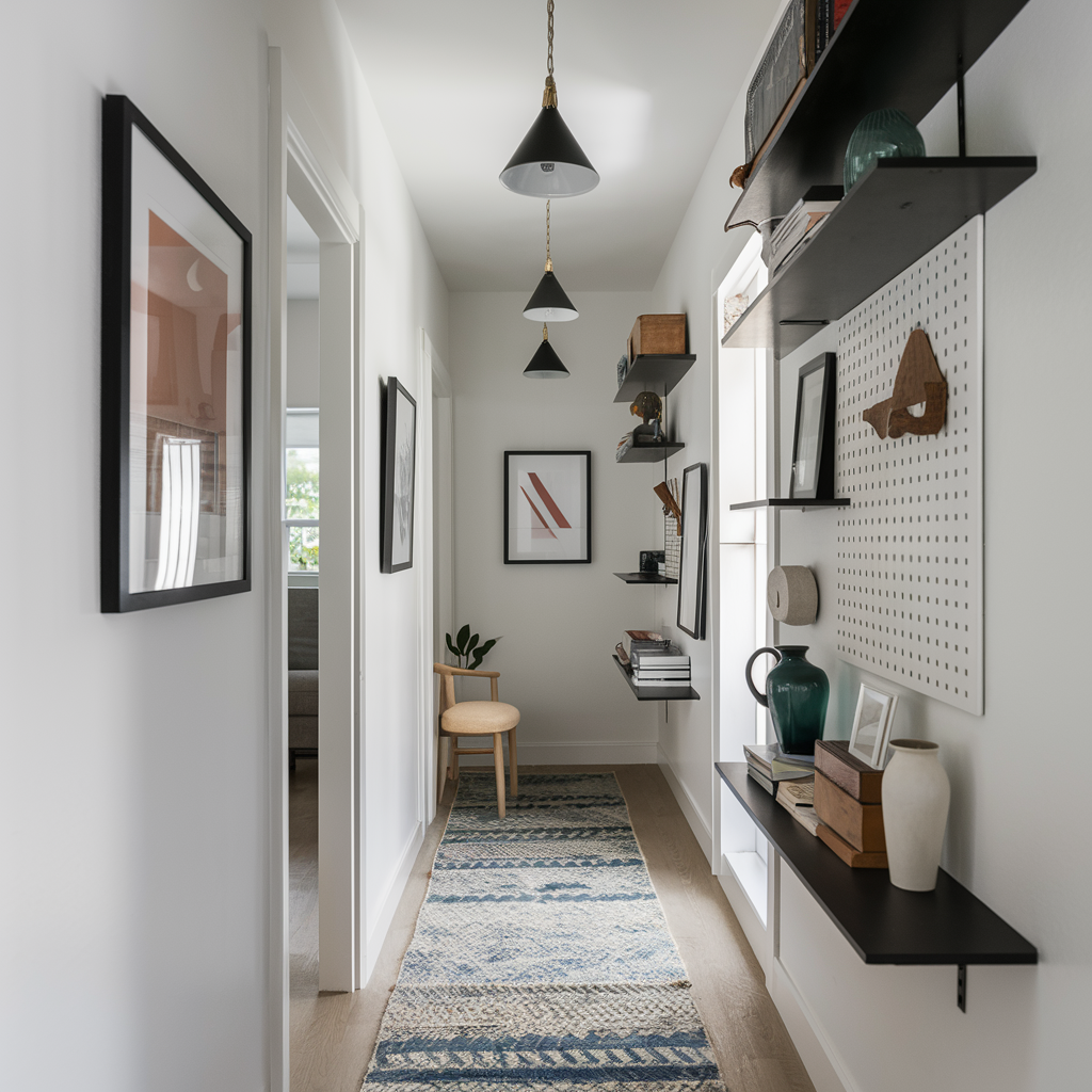 Integrating Functional and Decorative Elements in Narrow Hallways