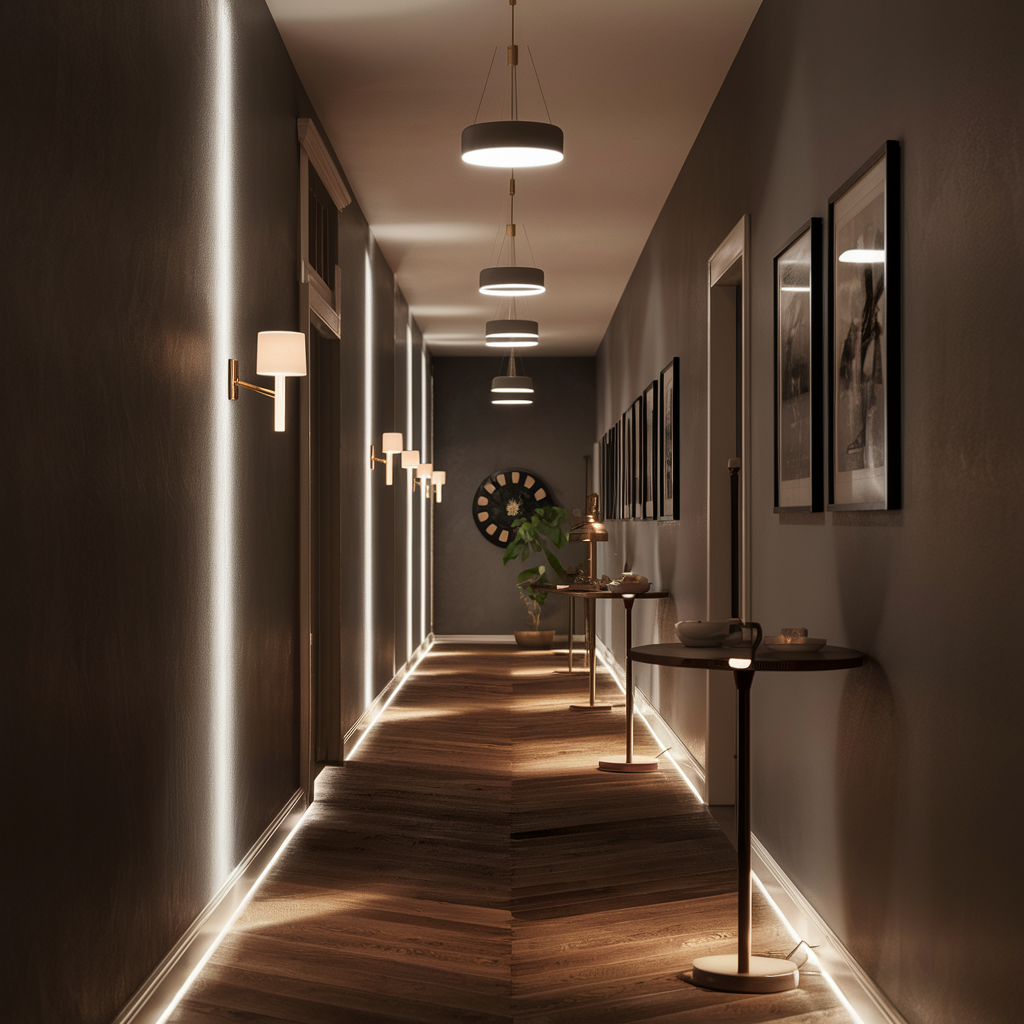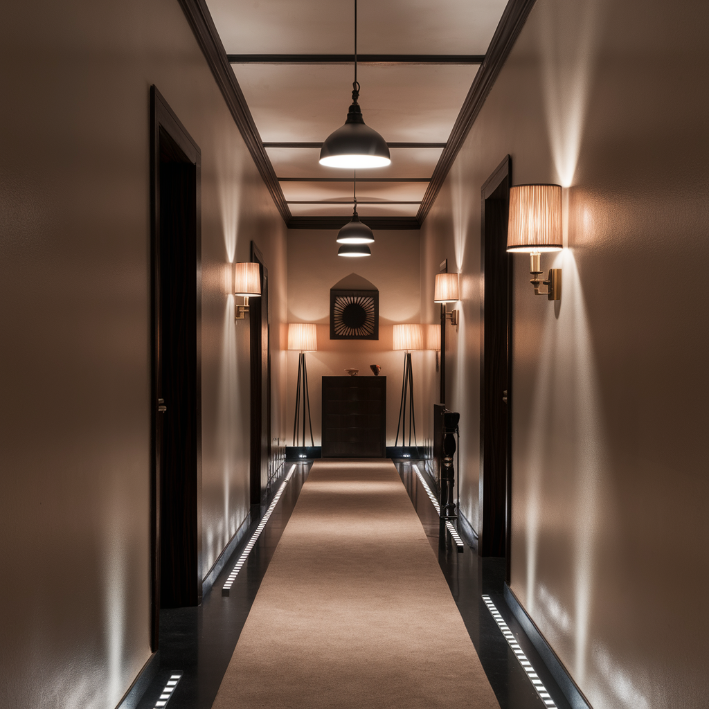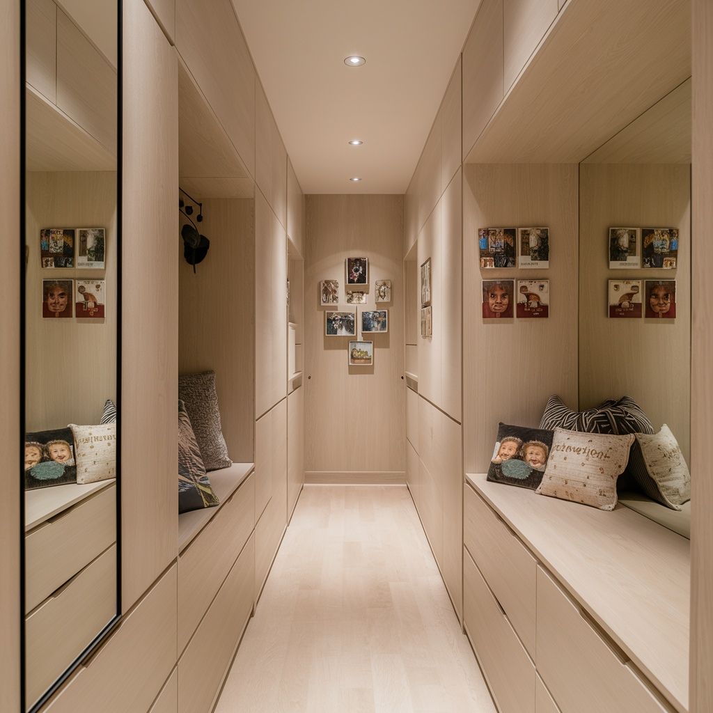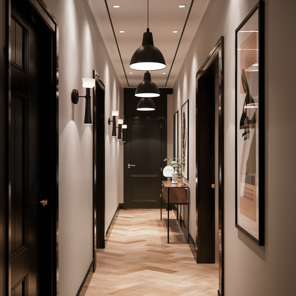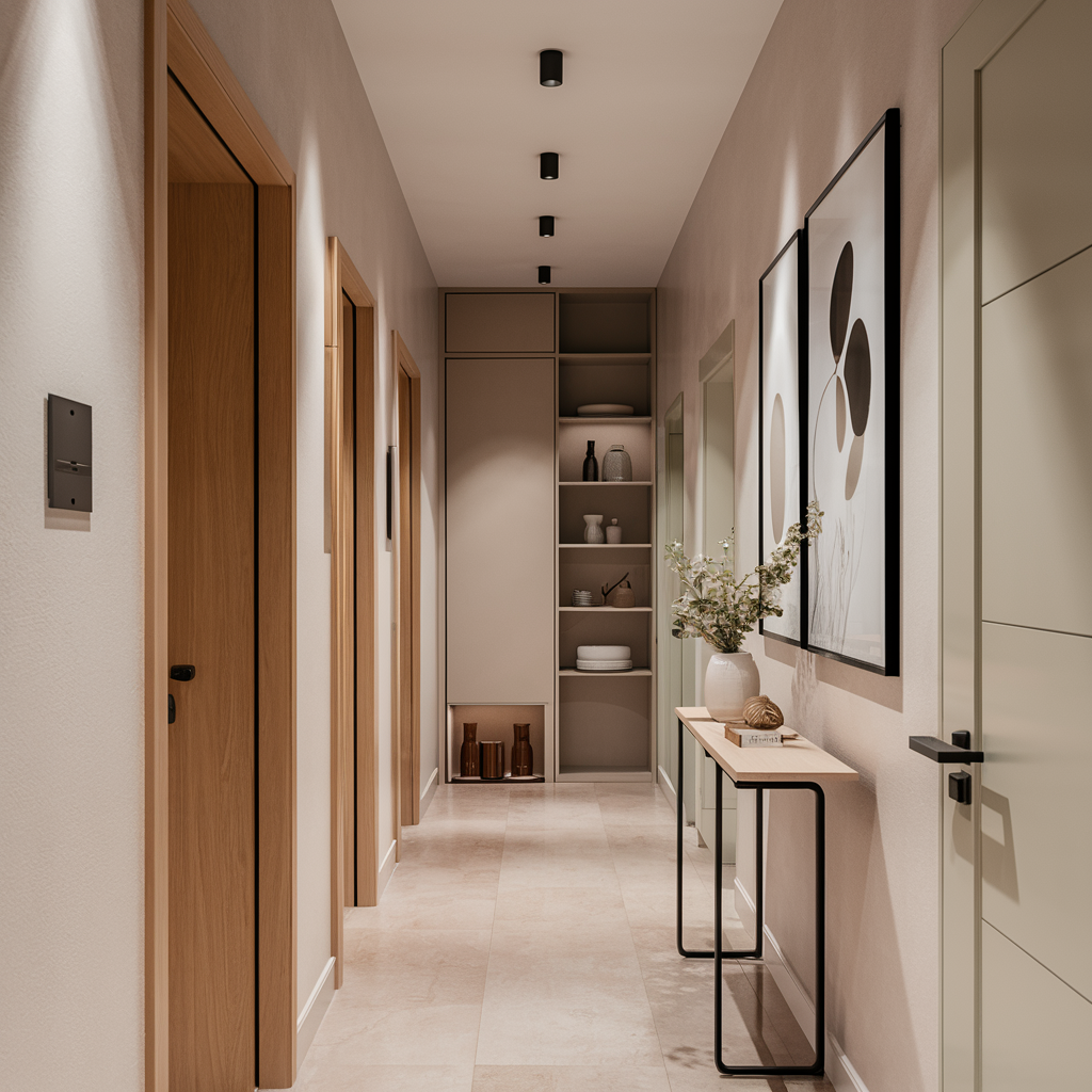 Integrating Functional and Decorative Elements in Narrow Hallways