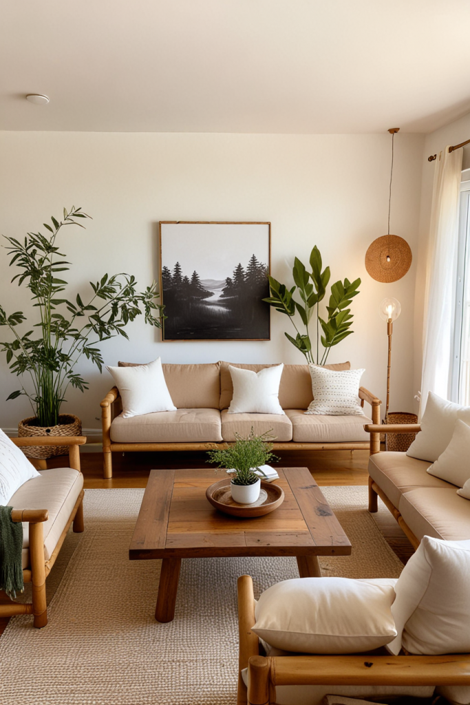 The merging of Japanese and Scandinavian designs called “Japandi” continues influencing interiors in 2025. Simplicity, natural materials, and the beauty of a home’s function are prioritized in this aesthetic which strives for order while still providing comfort. This style is characterized by the use of pale wood, soft-textured fabrics, simple furniture, and crafted decorative items. Japandi living rooms are tranquil and restful due to their warm colors, understated furniture, and gentle illumination.