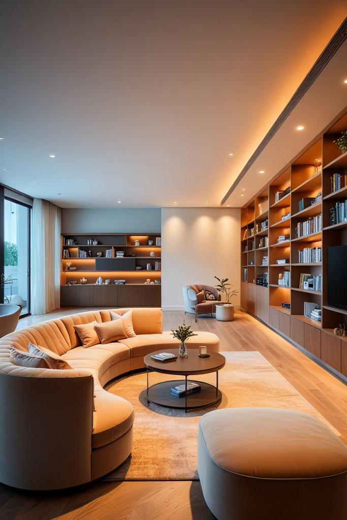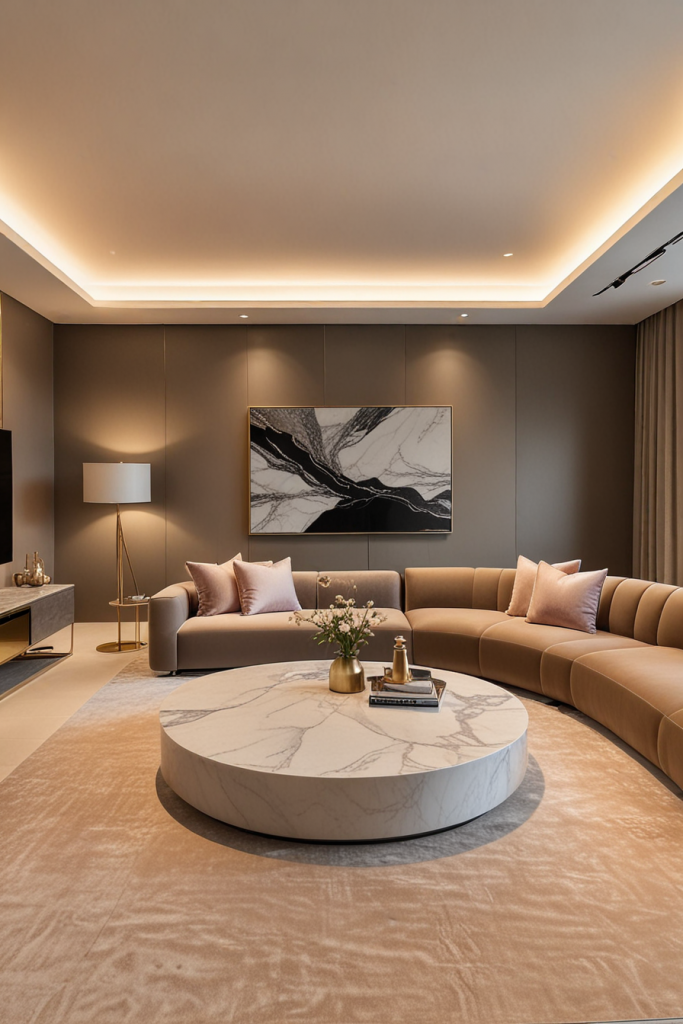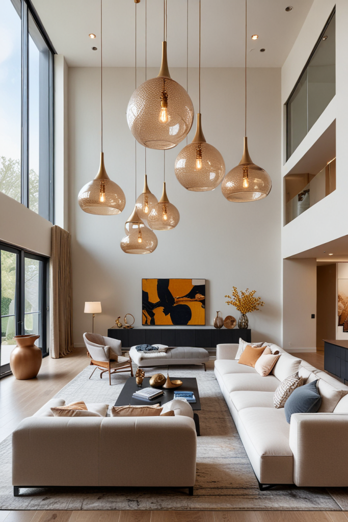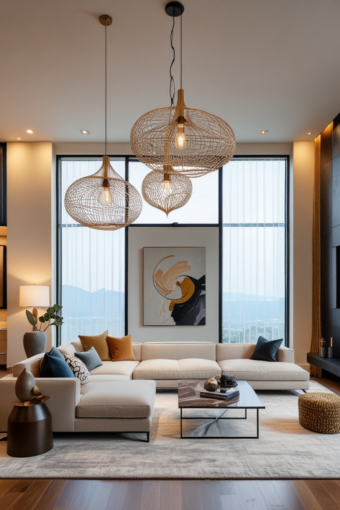 In 2025, design moves into a new era where lighting becomes an attention grabbing feature as opposed to just serving a purpose. Sculptural chandeliers, artistic LED lights, and large pendant lights transform the modern living room into a work of art. The setting provides wonderful diffused warm lighting which can be adjusted to create the right balance between practicality and elegance.