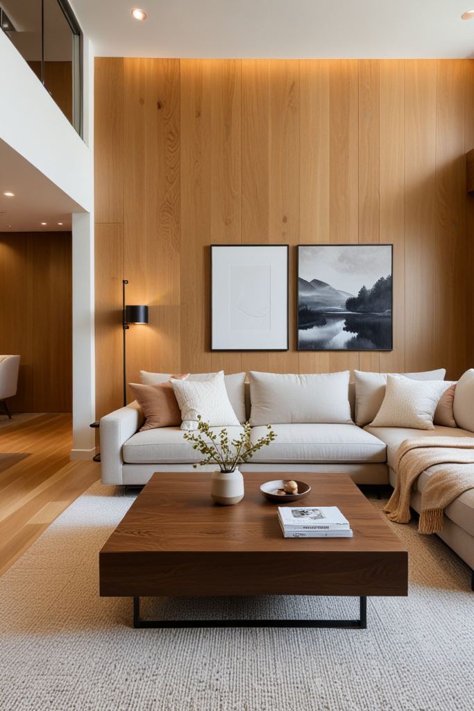 In 2025, wood trims seemed to be making an aggressive return as they are said to add a touch of charm to contemporary designs. Wood, whether it is in handcrafted coffee tables, wooded wall paneling, or on the exposed ceiling beams, certainly enhances the organic beauty of a space. Both lighter oak and darker walnut finishes fit a myriad of design aesthetics which range from minimalist to contemporary. The balance of texture and warmth created by combining wood with stone, leather, and soft textiles makes the living room feel inviting yet sophisticated.