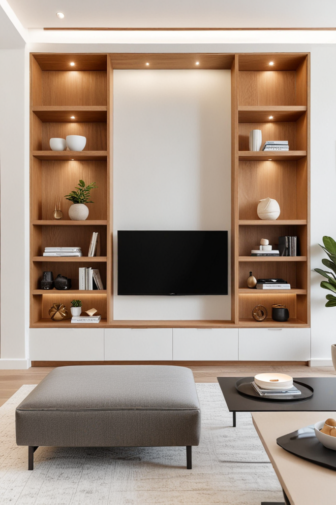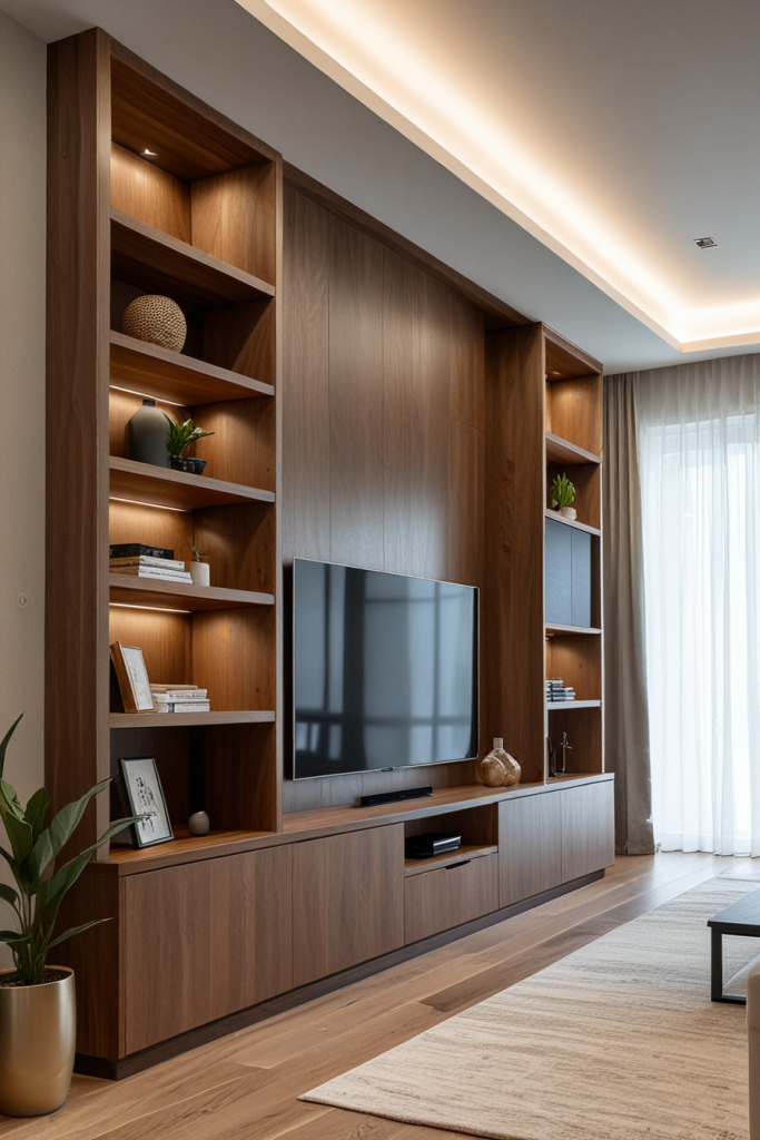 In 2025, Living Room storage options are equally functional and aesthetic. The use of open shelving and built in storage units help to declutter the room and gives visually airy space. The contemporary appeal is given by the use of wood, glass, and black matte metal which aids style and functioning. Floating shelves allows art, books, and curated decor to be showcased display, while built in storage cabinets reduces clutter and improves the overall room’s look.