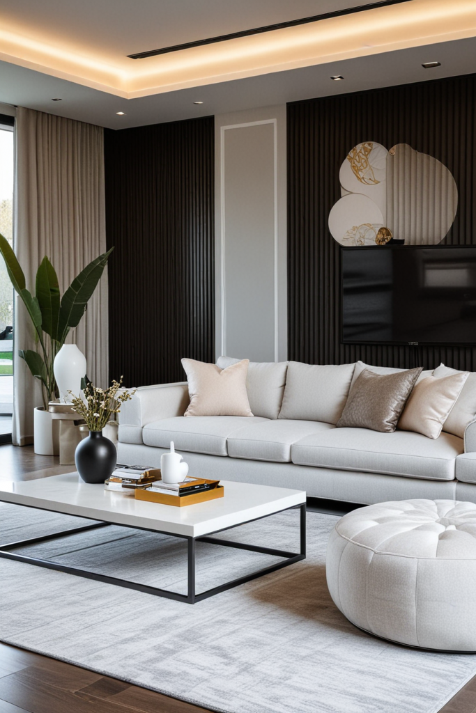 In 2025, living rooms will feature monochrome aesthetics at the forefront, perfectly merging bold contrasts with timeless elegance. The main focus of this style is the striking harmony of lightness and darkness, for instance the pairing of black and white, deep gray with bright white, or taupe mixed with charcoal. To achieve volumetric enhancement, deeply textured materials such as wool, marble, and matte metals are used to create the space. Sculptural lighting along with high-contrast decor and patterned rugs maintain a rhythm in the room, making it dynamic without hindering the appealing essence of the room.