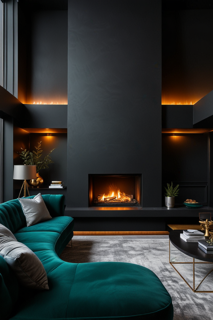 The use of darker color schemes evokes a bold yet elevated vibe which is poised to become one of the top trends in 2025. Plunge shades like charcoal gray, navy blue, deep emerald green, and rich expresso brown create a perfect blend to set a tone of luxrious living rooms. Combining bold walls with warm ambient lighting plush fabrics and cozy metallic accents ensures that the space remains inviting while not being overwhelming. Using contrasting yet balanceable textures like leather, soft wool, and velvet elegantly aids in softening the asthetic.