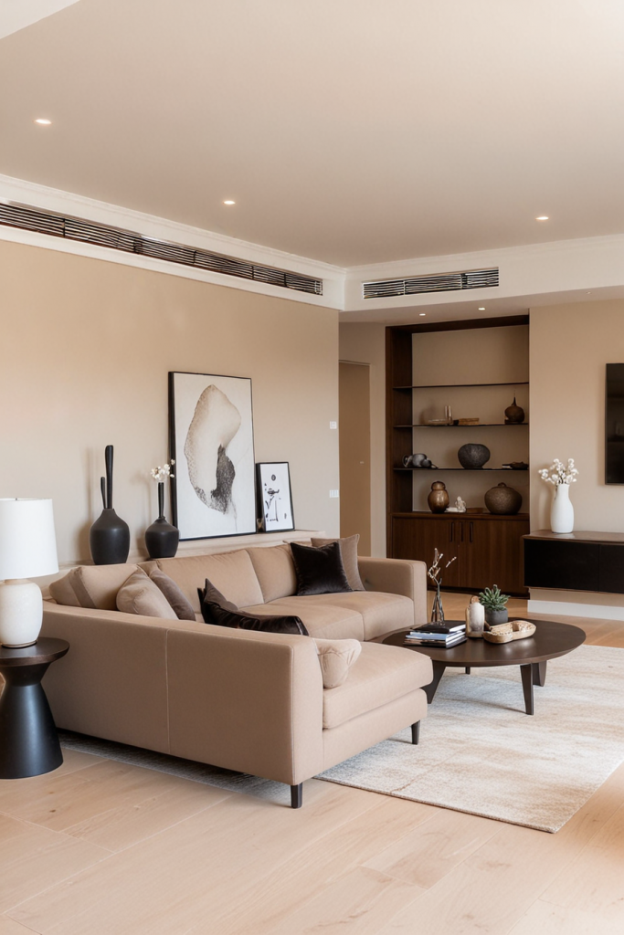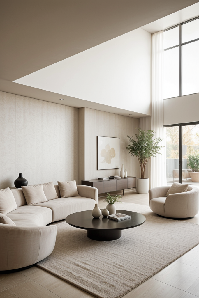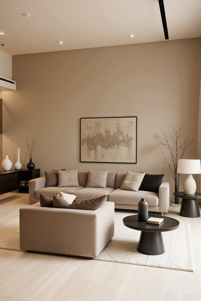 Neutral Color Palettes with Subtle Contrasts in Modern Living Rooms