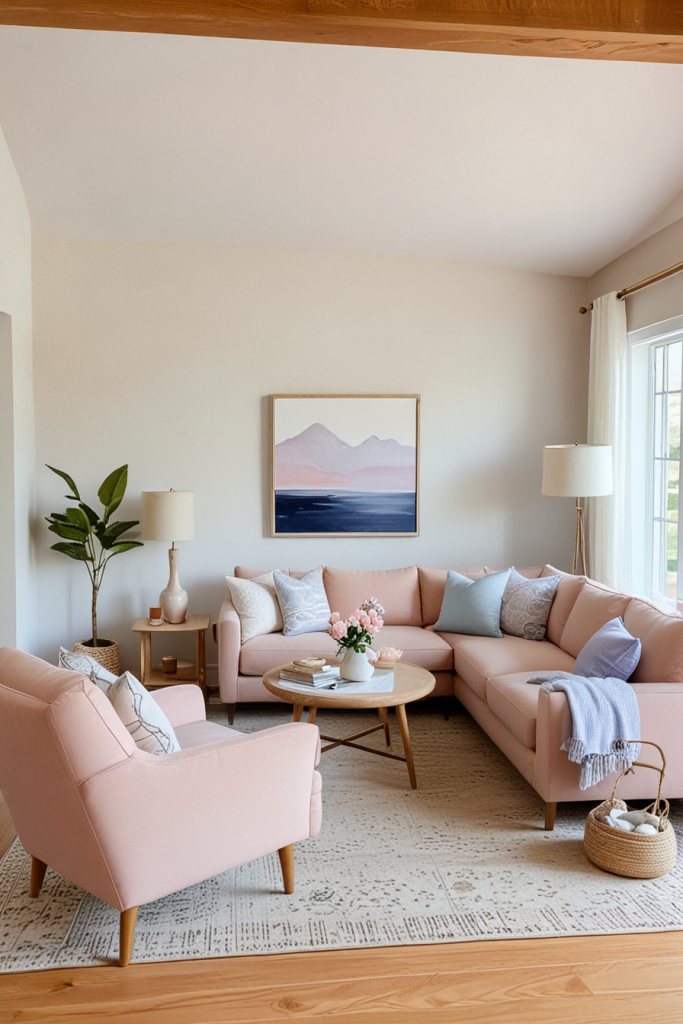 For a more calming and lighter option, use pastel details which are predicted to be popular in 2025 living room designs. Colors such as powder blue, blush pink, soft lavender, and sage green are relaxing and light hues that help in setting the right mood. These colors are implemented carefully to not dominate the room and are used in throw pillows, accent chairs, artwork, or textured rugs. Pastel colors, alongside nature and neutral colored furniture, provide soft, sophisticated, and calm energy into the room.