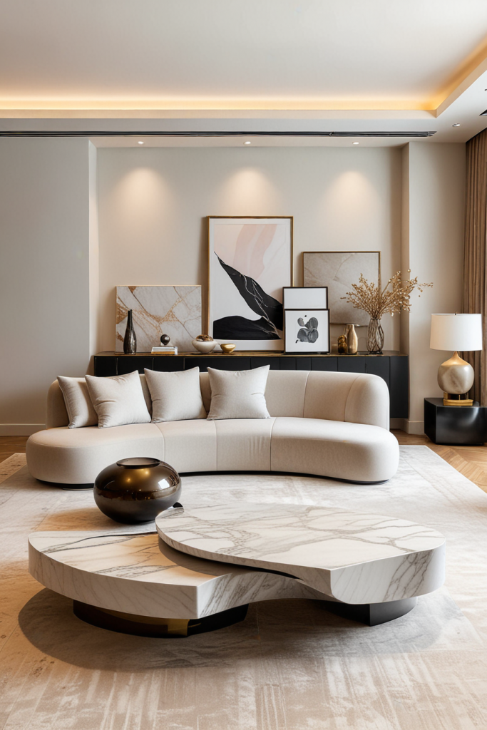 Innovative sculptural and bold statement pieces take center stage in 2025 with first coffee table serving as the main attraction. These tables crafted from marble, glass, reclaimed wood or even metal serve both aesthetic and functional purposes. This design trend is defined by asymmetrical shapes, geometric bases and layered levels which are guaranteed to catch the eye of anyone who walks into your living room. To make sure harmony in the design is maintained, a statement coffee table must always be paired with furniture that match its design.