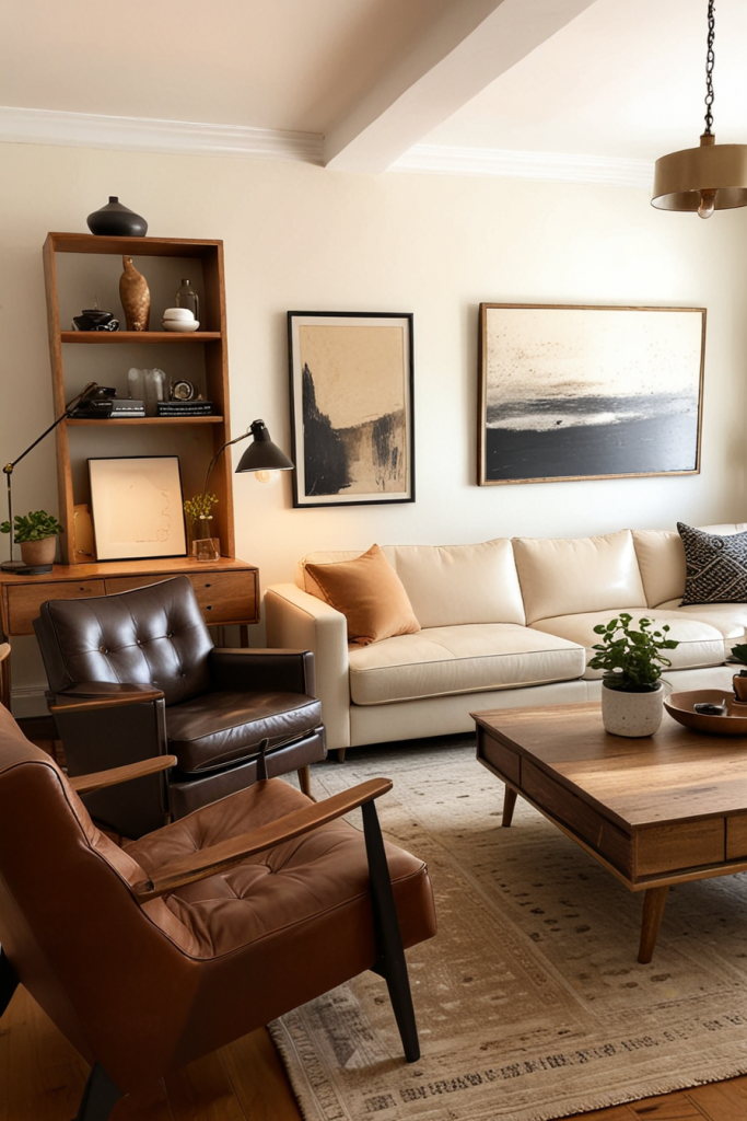 The combination of modern and old styles gives this living room an appealing multi-dimensional look. In 2025, this fusion gets additional assistance from modern sleek furniture, antique decor pieces, and mid-century modern styling which is elegant but still simple. Vintage lighting fixtures paired with distressed wood tables and striking modernist armchairs are softened by glass tops and clean-lined couches which makes the whole room appealing. The secret is effectively blending various textures and styles to yield a curated look.