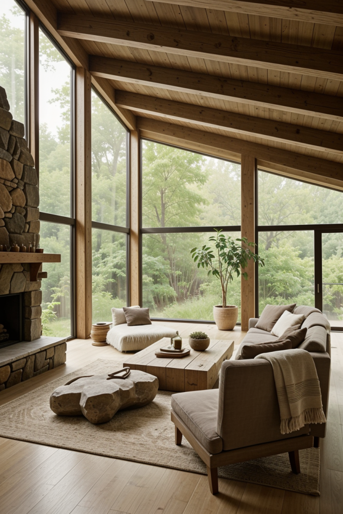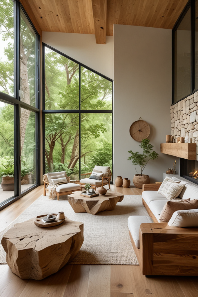 Organic elements, earthy color palettes, and biophilic design will most certainly dominate influences in 2025 living rooms and Nature will remain a prime factor. Soft linen fabrics, woven details, stone fireplaces, and raw wood furniture enables calm connection to the environment. Indoors, large windows, textured fabrics, and water features add to the organic soothing atmosphere. Warm brown, deep green, and sandy neutral shades evoke a sense of calm and serenity.