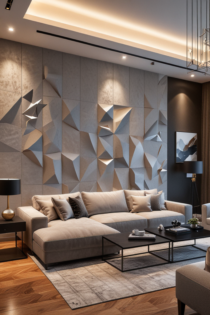Textured Walls and 3D Accent Panels for a Sophisticated Look