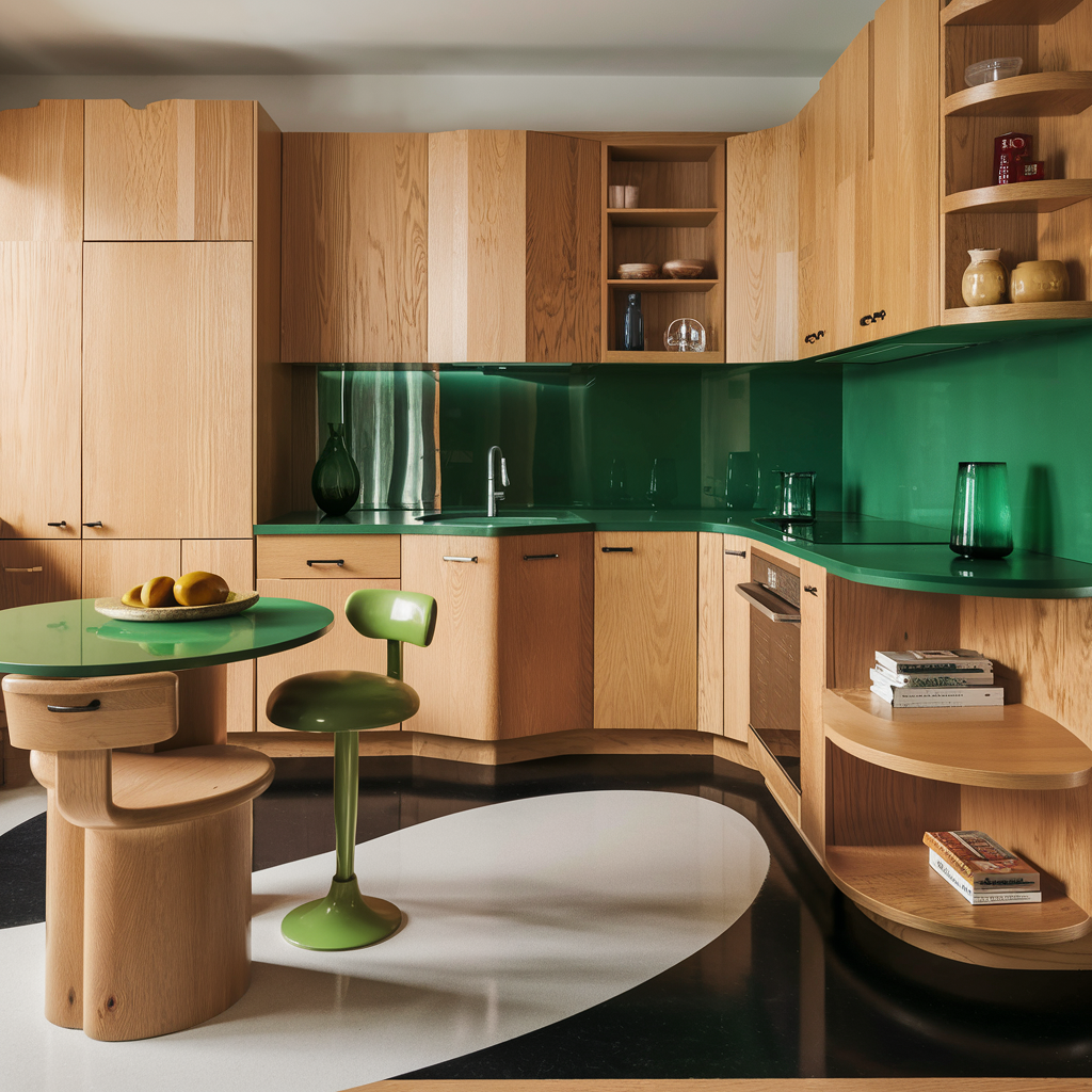 Introducing Green Accents in Oak Kitchens