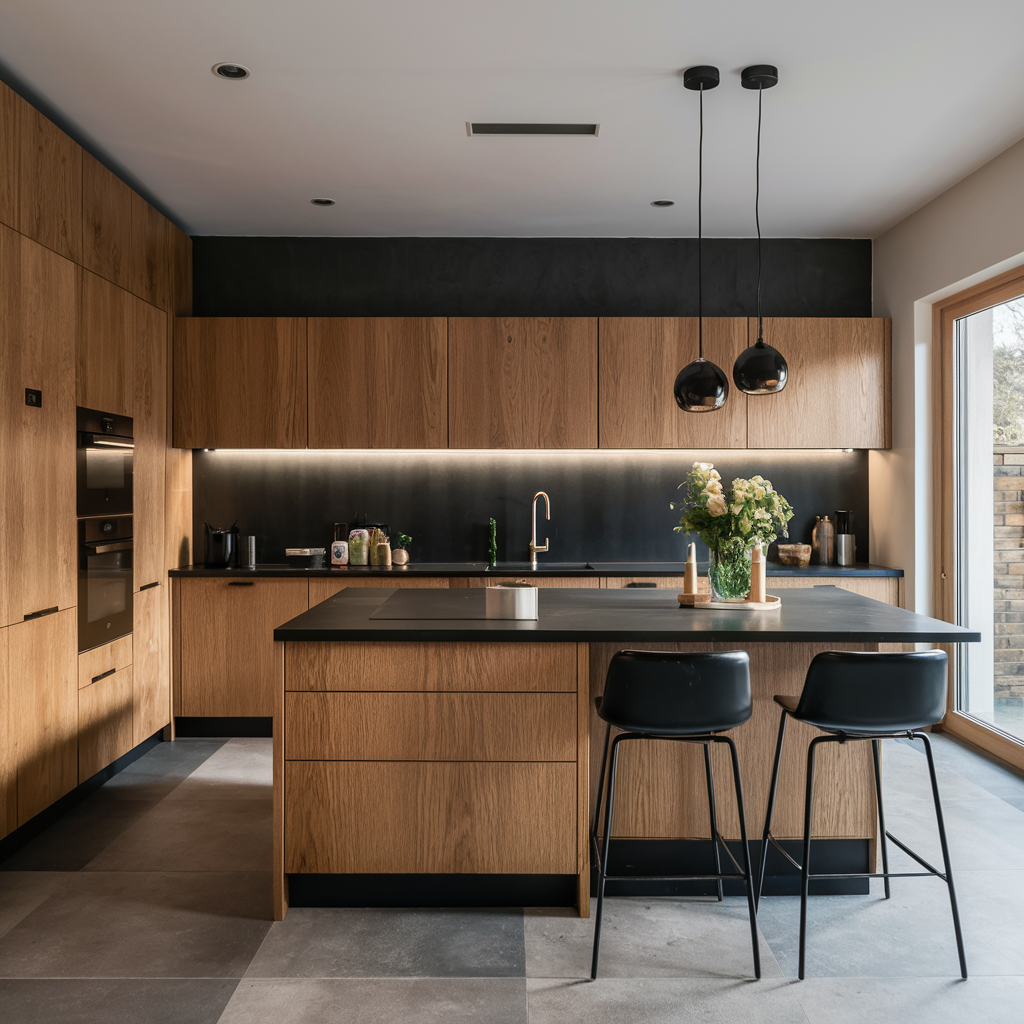 Combining Black and Oak in Kitchen Design