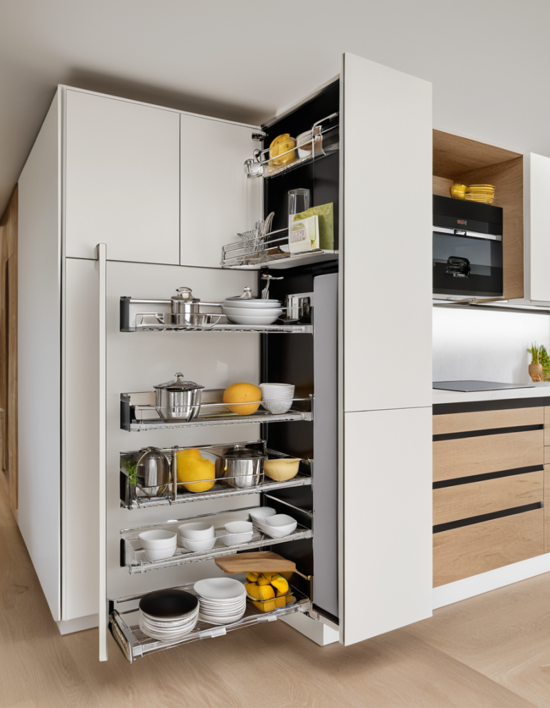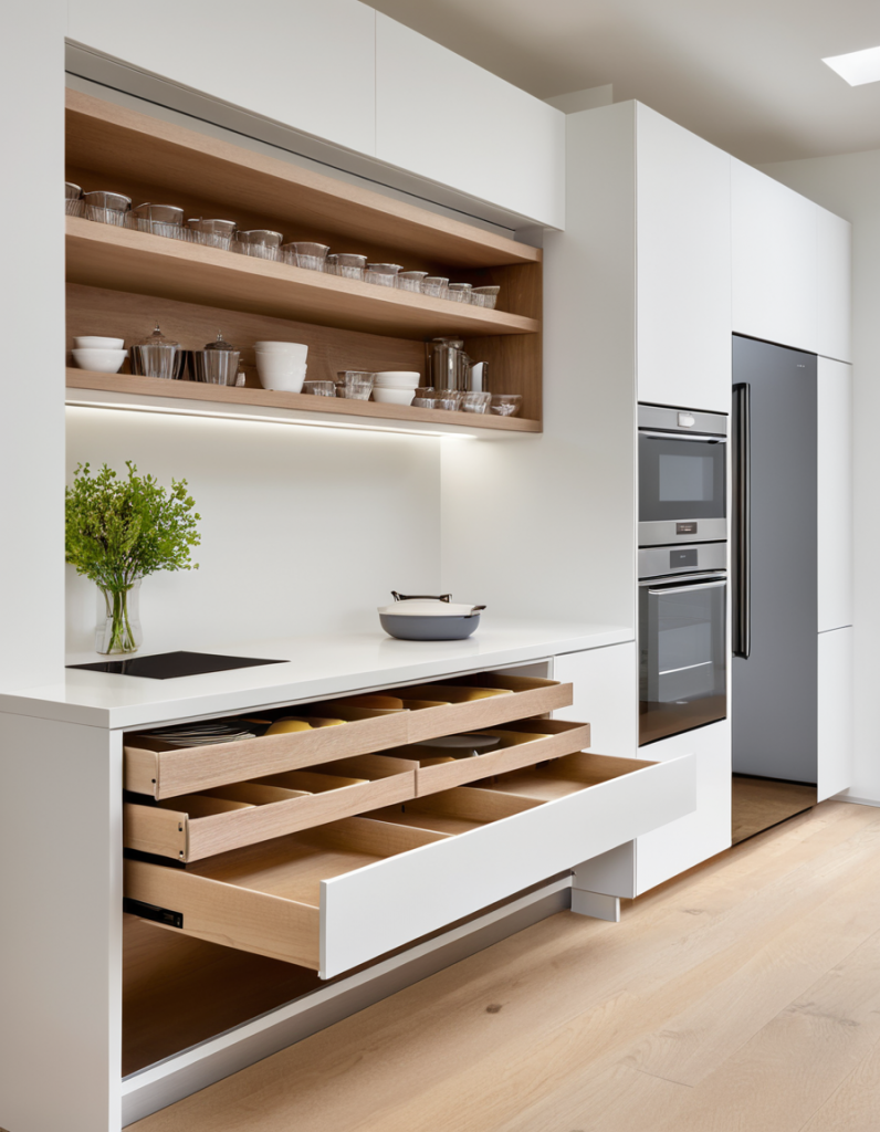 Small kitchens? Enough with conventional storage, come up with new ideas. Your kitchen stays clean by investing in pull-out cabinets, wall-mounted racks, and drawer organizers. Make the most of above-ground storage by making use of high shelves that are fixed to the ceiling and taking advantage of the Cabinet tops to gain extra storage. People with limited financial resources can use hooks, magnetic knife strips, or rail systems for utensils. The methods are inexpensive yet result in really good space use.