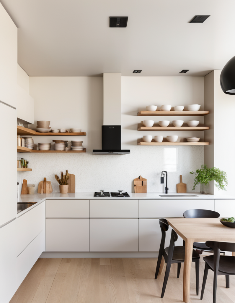 Minimalism in small kitchens is usually the best approach to achieving clean and uncluttered room. Presently, minimalist designs are straightforward, yet they possess a practical approach to life and lack of artifice with emphasis on neutral color hues, the use of smooth surfaces, and little to no ornamentation. The modest design may be achieved by eliminating the overload of houseware, which can make the tiniest kitchen seem more convenient. Slab cabinets with concealed handles and open shelving besides aiding the composition of a streamlined look bring about easier storage. The minimalist design also matches perfectly with the concept of tiny house, where each element has a particular function.