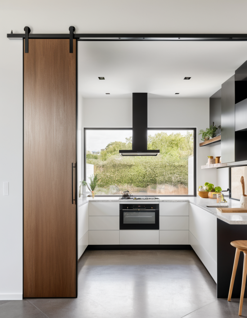 The sliding doors come across as a great way to separate small kitchen spaces without really giving up the natural light or visual openness. Traditional doors need space to swing, but sliding doors slide into the wall or move along the track, which then saves much floor space. They may be made of glass, wood, or even mirrored materials. They will act as a stylish addition and a screen for the kitchen. Major advantages of the sliding doors in the cases of kitchens in tiny house designs or the apartments are that they can easily create a sliding partition while still preserving the overall layout’s expansiveness.