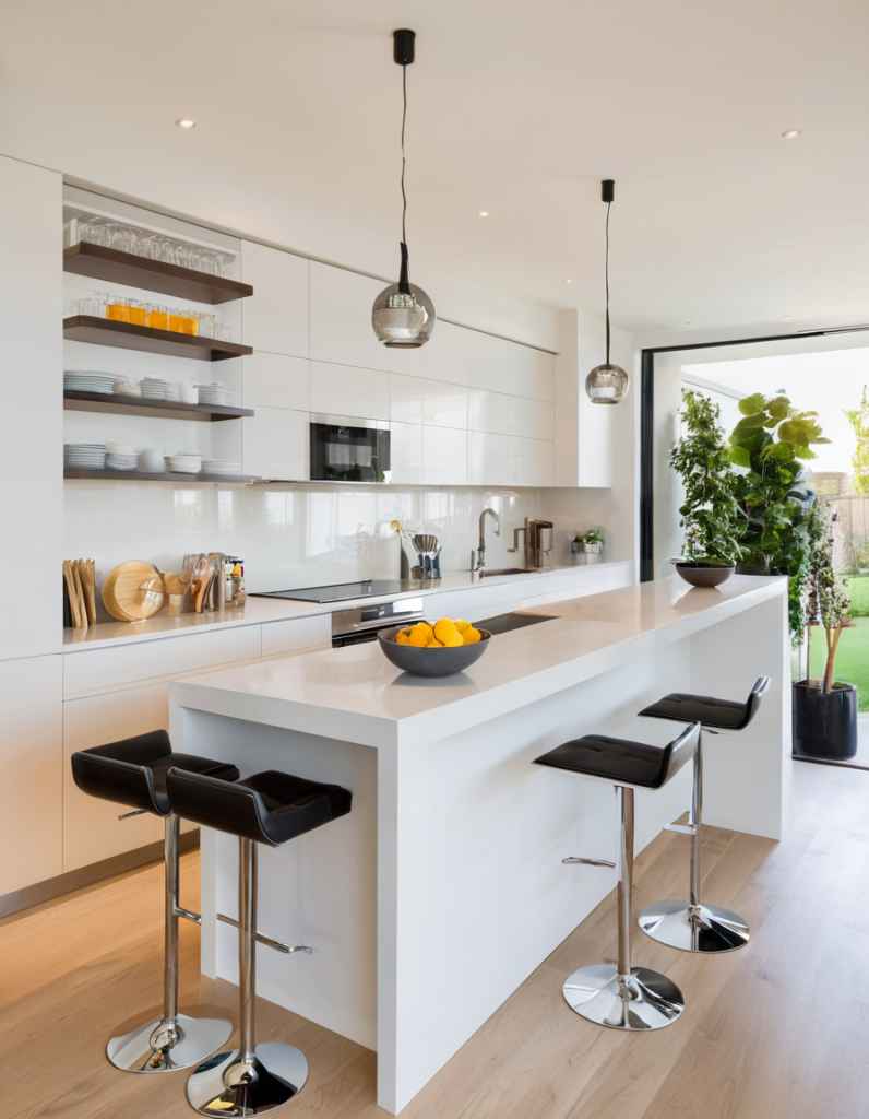 Studio apartments are places, where space is in shortage, so open kitchen designs are particularly attracting. A perfect floor plan that can provide great space in the living room can make the whole apartment seem more roomy and seem intertwined. In a setup like this, the kitchen is located in the middle of the living and dining areas, with almost no barriers such as a bar-like island or a breakfast bar. A consistent color palette and matching furniture throughout the kitchen and living room are elements on which the creation of a uniform, modern style relies.