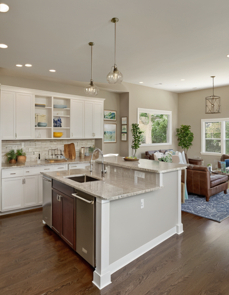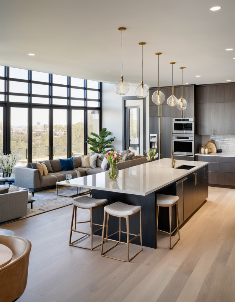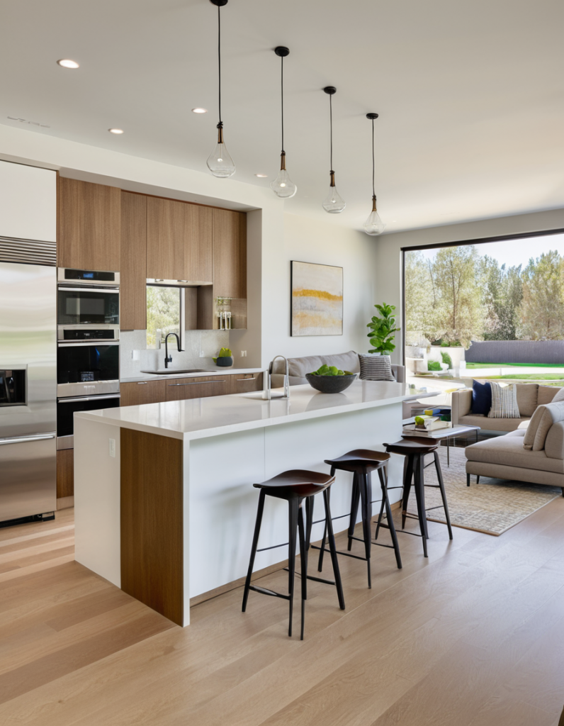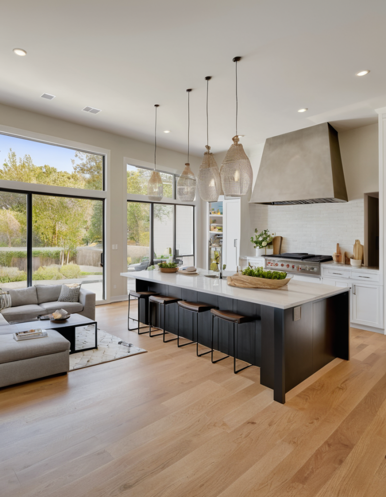 To achieve a space that is unique, it is essential to have the correct flooring for both the open kitchen and living area as it is the place where the home is integrated as a single whole. Homeowners in 2025 are turning more to hardwood, stone, and luxury vinyl that are both durable and elegant for their floorings. The top selling feature of hardwood is its ability to keep the environment warm and connect effortlessly, thus sustaining the smooth combination of dining and sitting areas. Stone tiles and polished concrete, on the other hand, give a more futuristic designer look to your residence.